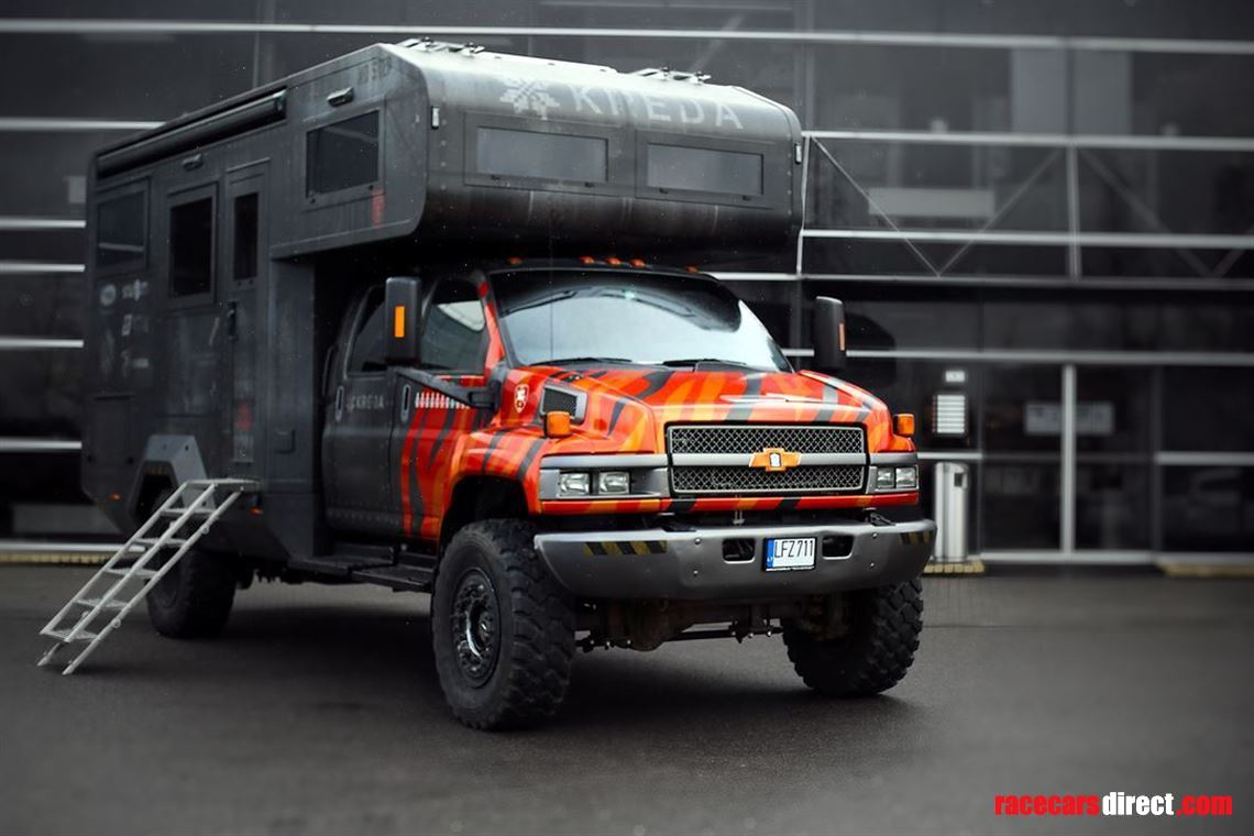 A professionally built and unique motorhome based on Chevrolet Kodiak C5500 truck chassis with reliable Duramax V8 diesel engine and Allison 1000 automatic transmission. It was used and tested by Dakar racing team during 2021-2023 races in Saudi Arabia and little used for personal travelling afterwards.