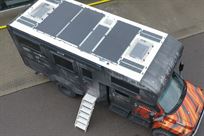 This expedition motorhome stands out and delivers an incredible autonomy based entirely on electric energy with 1.5 kW solar panels and 4kW of alternator power feeding into 10kWh of Li-Ohn batteries, with external power inputs from both 230VAC and 120VAC. The truck is equipped with 350L fresh water, 150L grey water and 400L diesel fuel tanks.