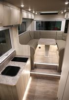 It will carry and sleep up to 5 people! Seating area converts into a king bed and a separate master bedroom is located above the cabin. Cabin and living box are connected with an open passthrough. Living box is equipped with diesel Webesto air heater and Dometic air conditioner for year round comfort.