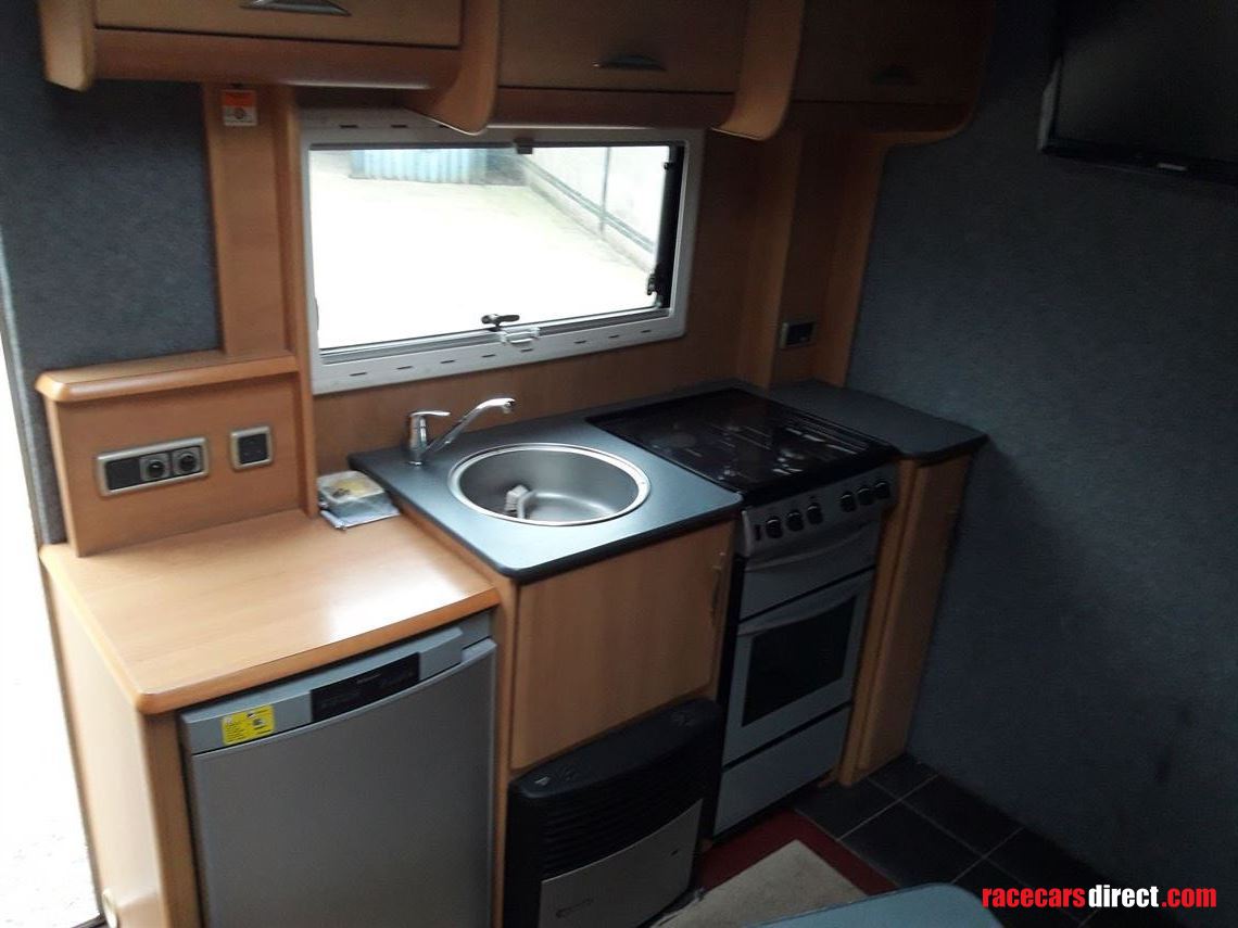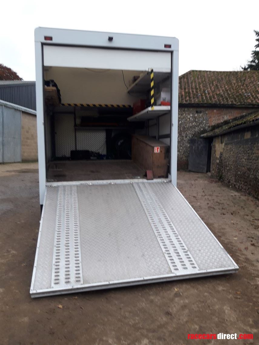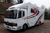 Mercedes Atego 815, 2003, 11 months MOT, 320,000kms, 7.5tonne gvw, tacho exempt. Garage area has a winch and is 11ft 2ins long with ample space for spares and wheels etc. 2 belly lockers provide extra storage. Tailboard doubles as loading ramp with an internal beavertail to ease loading angle. Living area has double bunk over garage, seating converts to single bunk, and for your comfort there is a water heater, cooker with grill and hob, fridge, shower, heater, t,v leisure battery and 240v hook up. There is also a spare wheel, reversing camera and dash cam. No VAT, private sale.