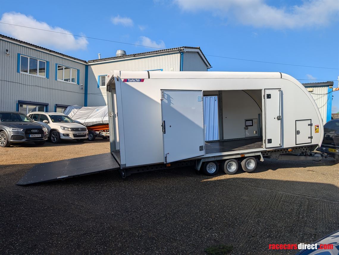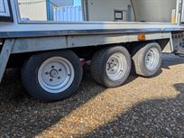 PRICE IS PLUS VAT........TRIPLE AXLE TRAILERTEK GALAXY BY WOODFORD TRAILERS, EXTRA LARGE, HYDRAULIC TILTING, CAR TRANSPORTER TRAILER, CAN FIT A RANGE ROVER IN IT, ELECTRIC WINCH WITH WIRELESS REMOTE CONTROL, ALSO COMES WITH 3 SPARE WHEELS. DVLA REGISTERED FOR COMMERCIAL EUROPEAN TRANSPORT. HAS ONLY HAD LIGHT USE.