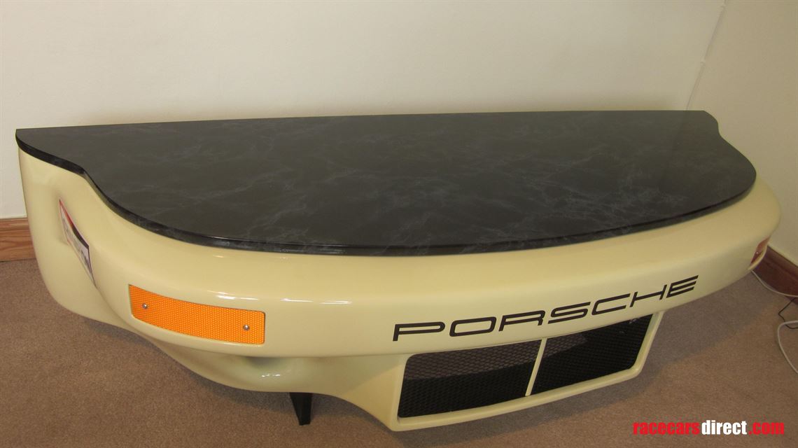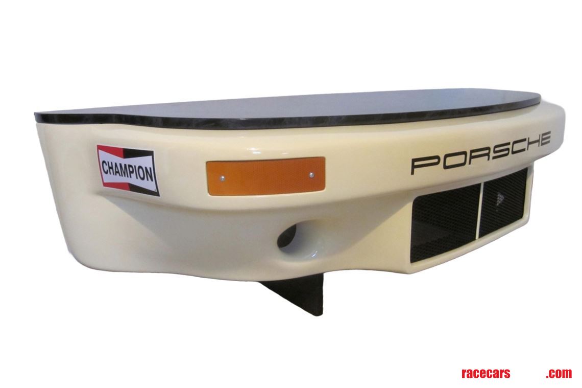 This unique bespoke table pays homage to the 1974 Porsche 911 RSR chassis #9114600100. Finished in a period colour, Sahara Beige, the table has a quartz black top adorned with 'Champion' spark plug decals and Porsche script to the front.