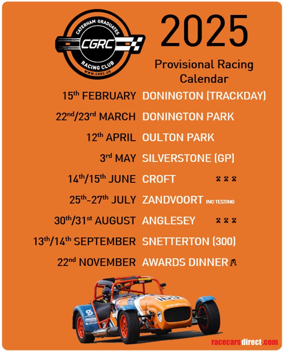 CGRC are one of the largest single make UK Championships in club racing, working hard to provide the best in fair, close and competitive Caterham racing in a social and friendly environment.