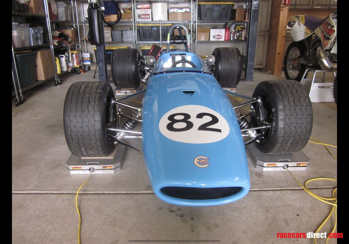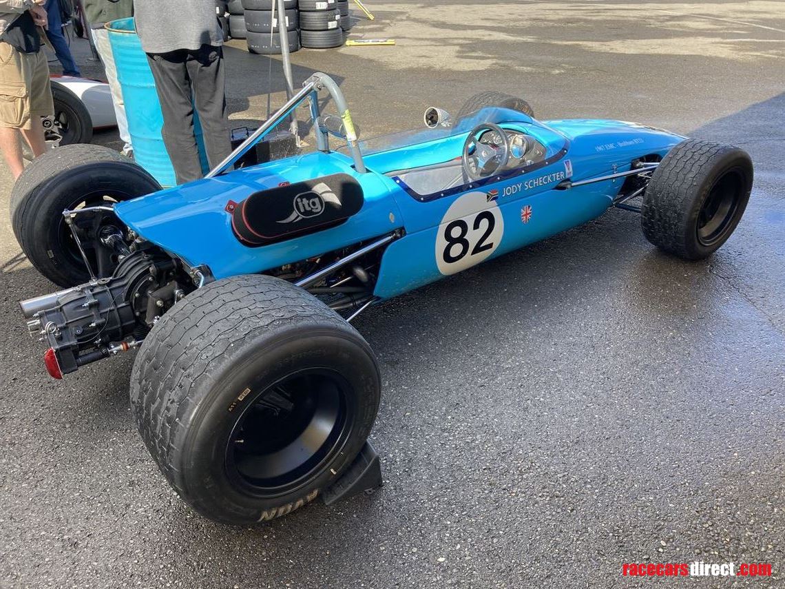 This car was built-up in 1967 by Erlich Motors Company. It was based around an original Brabham BT23 chassis, RF10-01. The car was set up as an F3 with an MAE engine and raced by Mike Keele. In 1971 it was then fitted with a 1600 cc restricted intake manifold motor and raced by Jody Scheckter as his first race car at Silverstone and Mallory Park. In 1994 it was converted to a Brabham BT 23 F2 by Simon Hadfield, and fitted with a Cosworth FVA and a Hewland FT200 gear box. The car was last raced in 2014 and has 3 hours on a Jennings engine refresh. HTP Technical Passport.