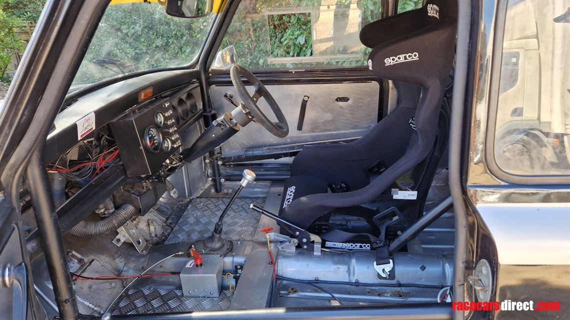 The car comes complete fitted with current fire extinguisher system, seat and harness. The engine is 1275cc with a 4-speed rover box (dyno test results included), adjustable suspension, 12" Minilites, full Safety Devices cage with belt bar and double door bars, perspex windows, lightweight race battery, brand new alloy tank, and GPS speedo. The car also has a V5 (so it could theorectically be made road legal put on the road) and is currently SORN'd.