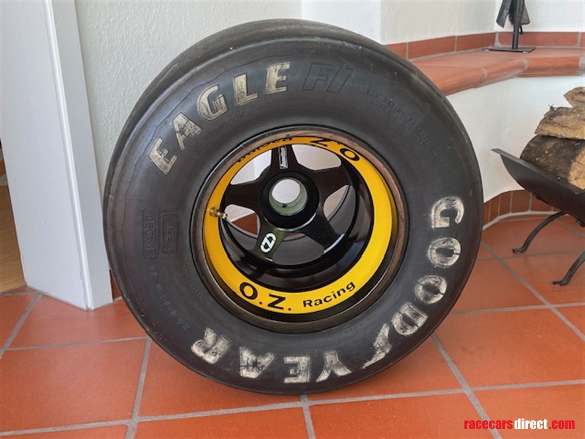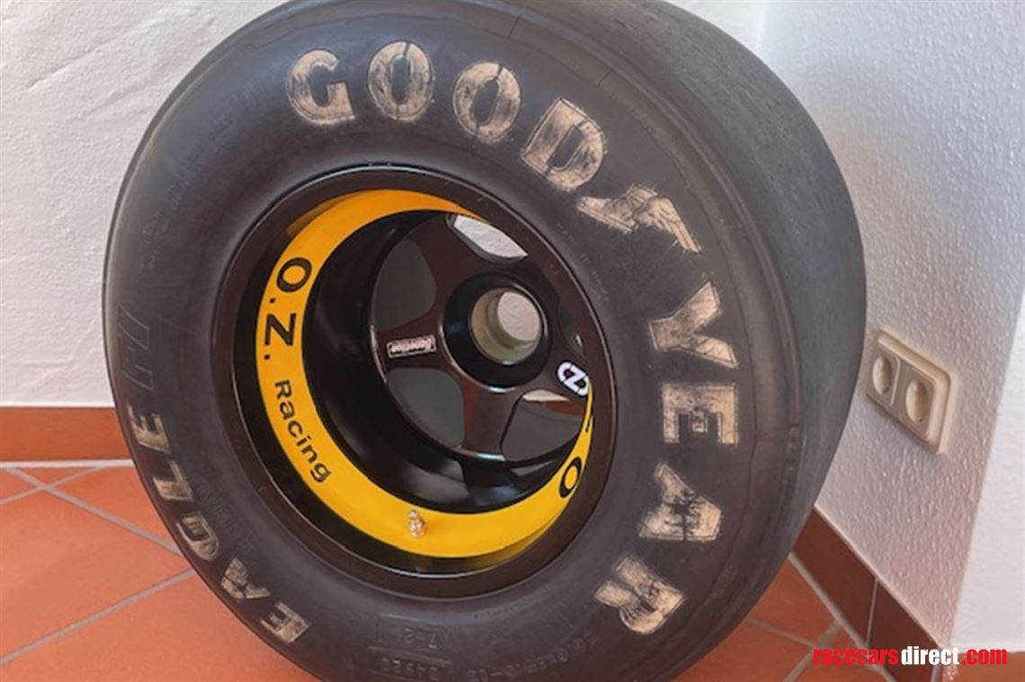 Original Benetton B192 OZ rear wheel with OZ rim and Goodyear tyre. The rim is in good condition. The tyre is brittle due to its age, but it keeps the pressure. Worldwide shipping is possible against take over of the the shipping costs.