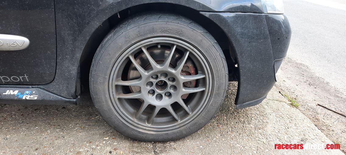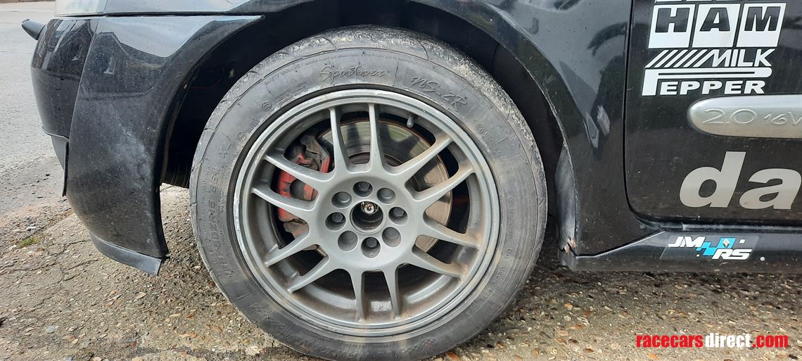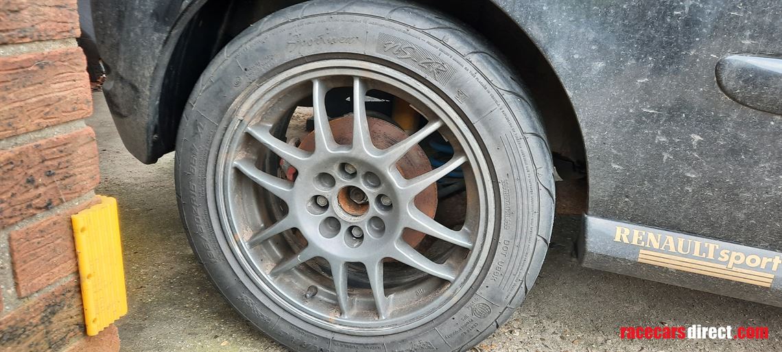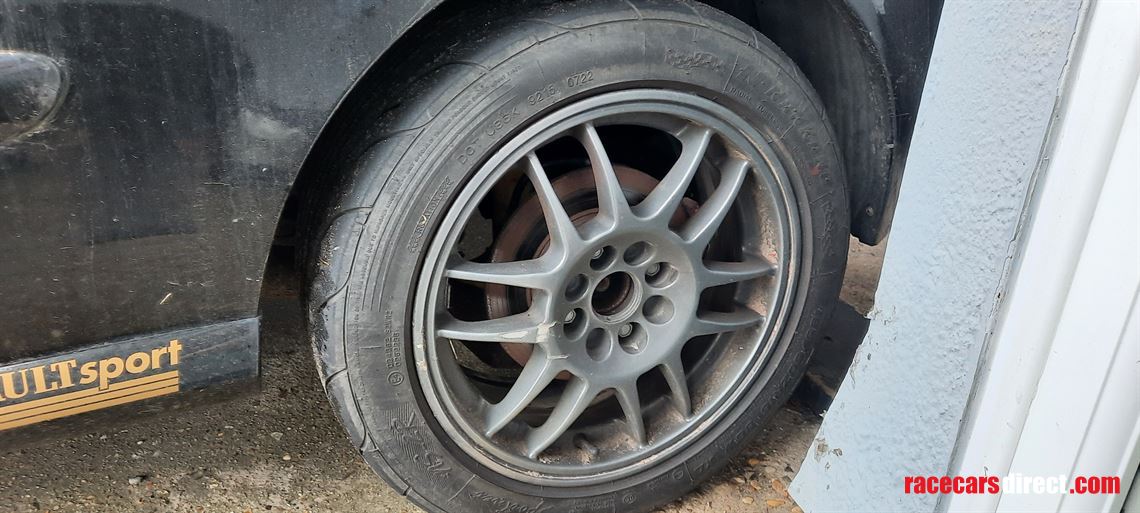 Car sits on 15" OZ F1 alloys (one has minor cosmetic scuff - as pictured) on 195/50/R15 medium compound Nankang NS-2R semi slicks with great tread left.