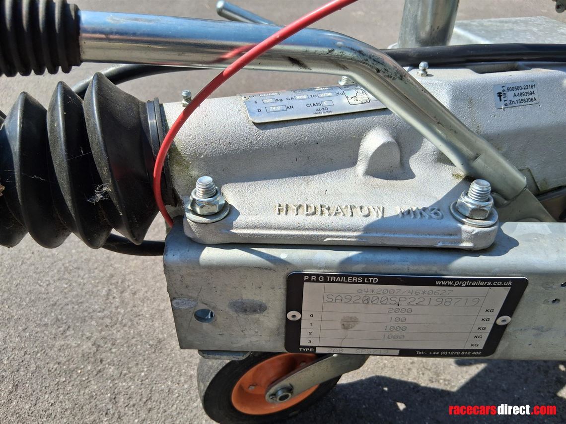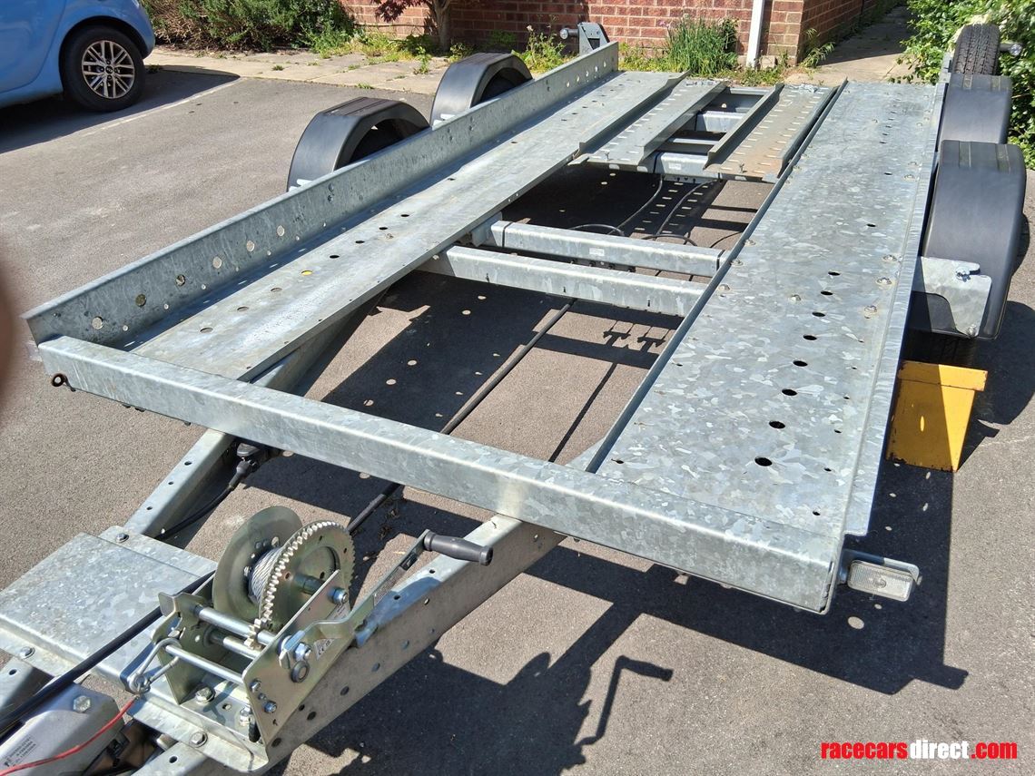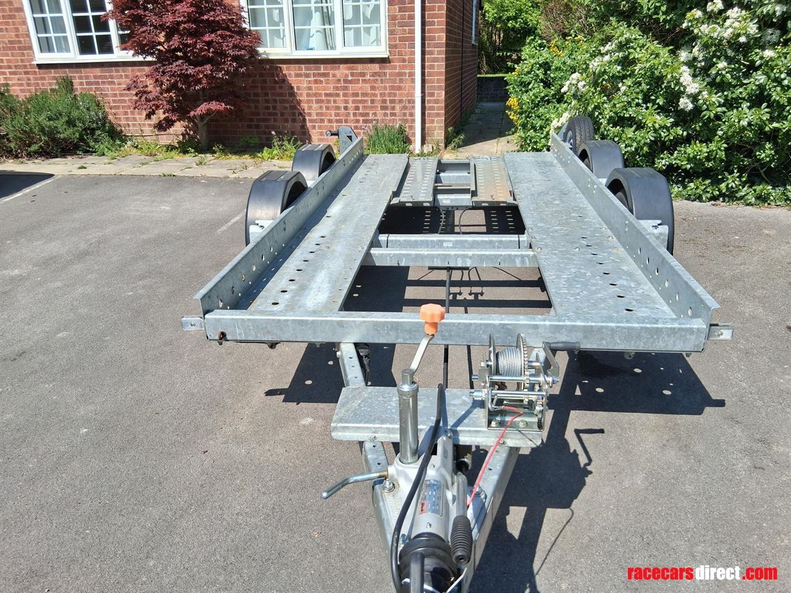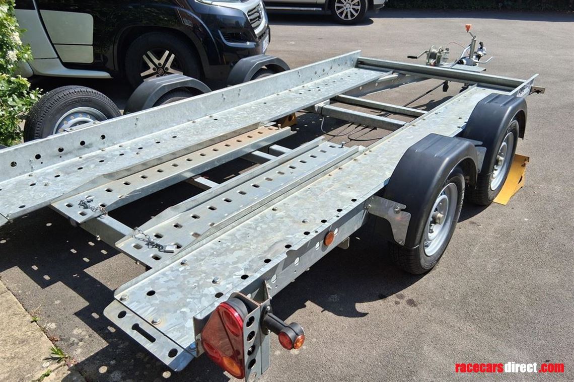 This is a small trailer, ideal for a Caterham, small GT car or small historic. It is plated for 2,000 kg and unladed is about 500 kg, easy for a single person to move.
