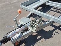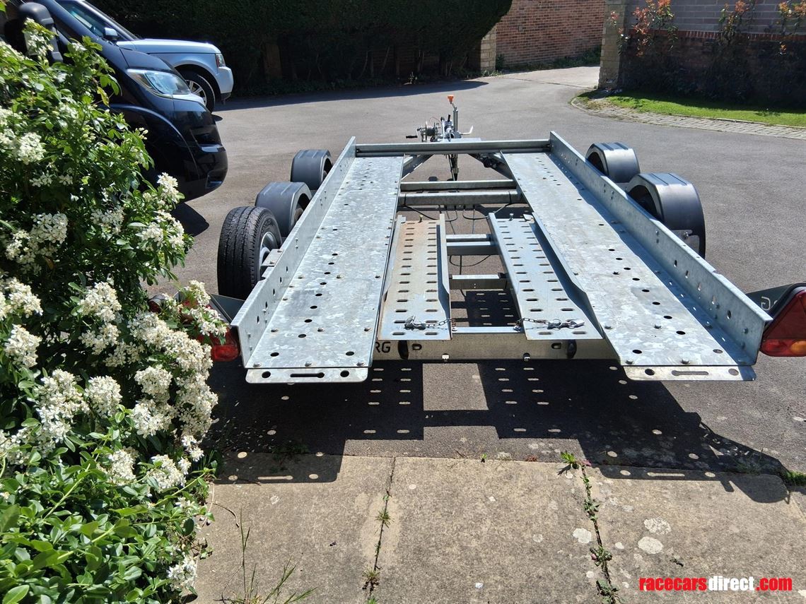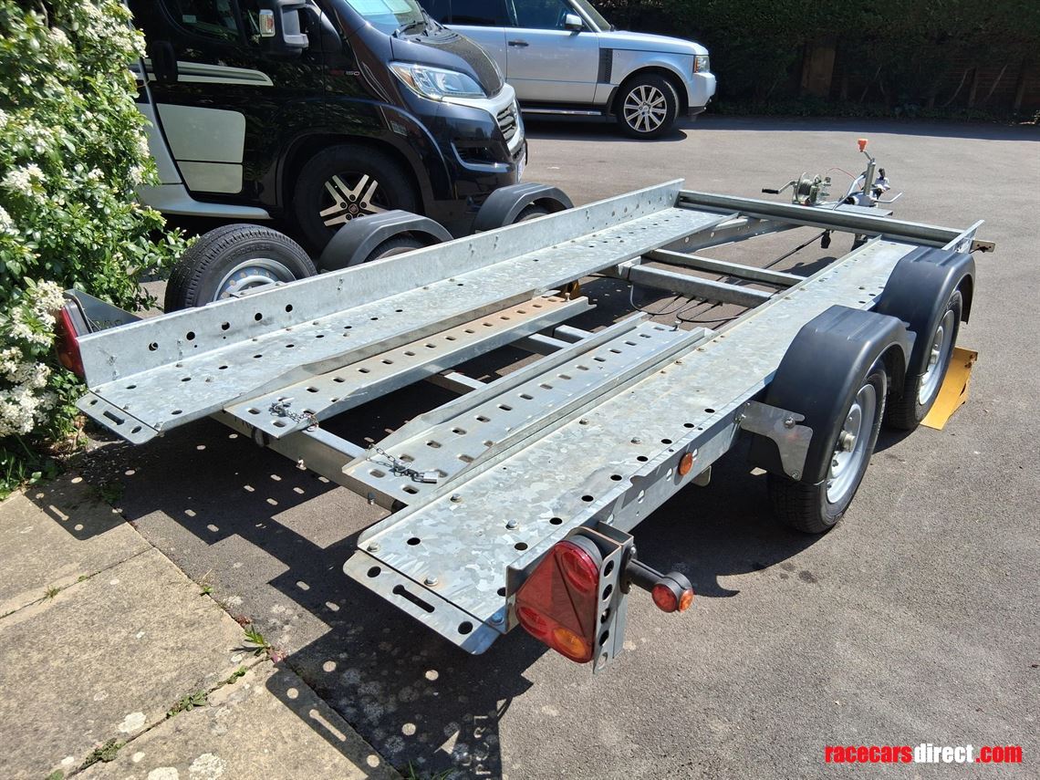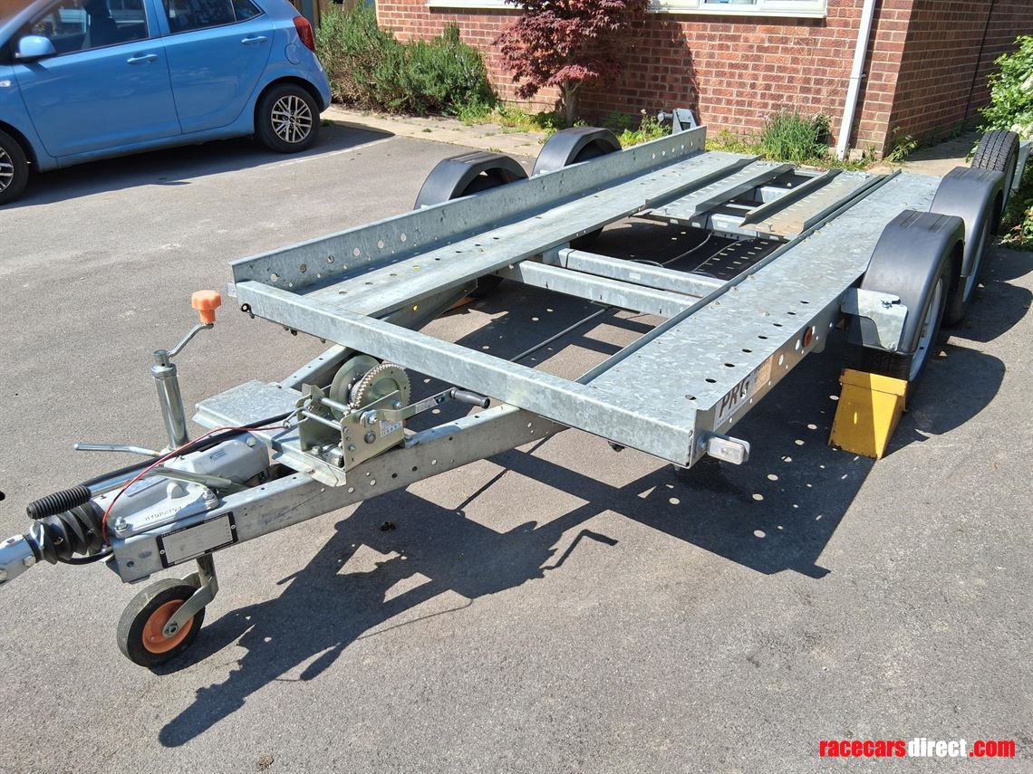 This is a small trailer, ideal for a Caterham, small GT car or small historic. It is plated for 2,000 kg and unladed is about 500 kg, easy for a single person to move.