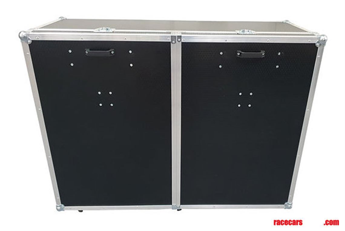 The front covers are removable and are supplied with table legs inside so that they can be attached to each side of the case as side tables. Creating an extra large working area from the case foot print.