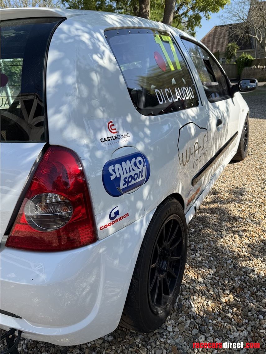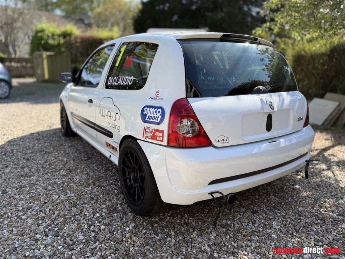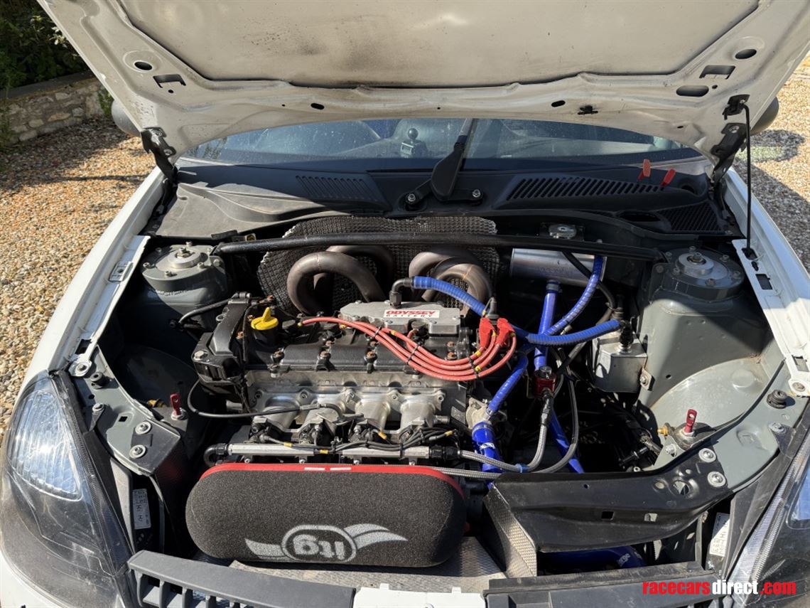 This 2.0 Clio was personally built by Will Di Claudio. All the right parts - Clio Cup Rollcage. Cooksport built engine. PMS Throttle bodies. Omex ECU. Custom made Engine Mounts same spec as Clio Cup race set up. Gripper LSD. Lowered FD. AST's dampers and PMS Rosejointed suspension. PMS Rear beam with larger wheel bearings. PMS suspension rubber throughout. 20Lts alloy race fuel tank. VW Alloy Radiator. Small lightweight alternator. Brembo Clio Cup 4 Pot Brakes (same as Megane 225). Quality build with no expense spared. Race ready - mapped on pump fuel producing 230 bhp. Gripper LSD. Rimstock Pro Race 15 x 8' wheels mounted with Yoko A048s. Set of wets mounted on similar Team Dynamics. Removable steering wheel- WAS full width Race dashboard. Race Technology Dash 2 Pro. Car weighs 850kgs with all steel panels still in place with all underseal removed. More information upon request.