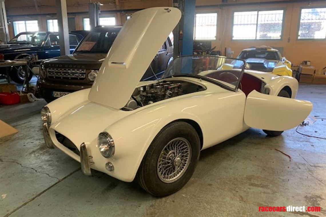full restoration for this AC ACE 1962 with rsx vin from period 1962 and european registration document , converted in 289 street cobra with rack and pinion , close to be finished , white on a red interior leather , 4 speed t10 transmission , could be fitted in fia spec ; at this time full street