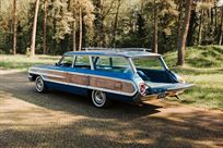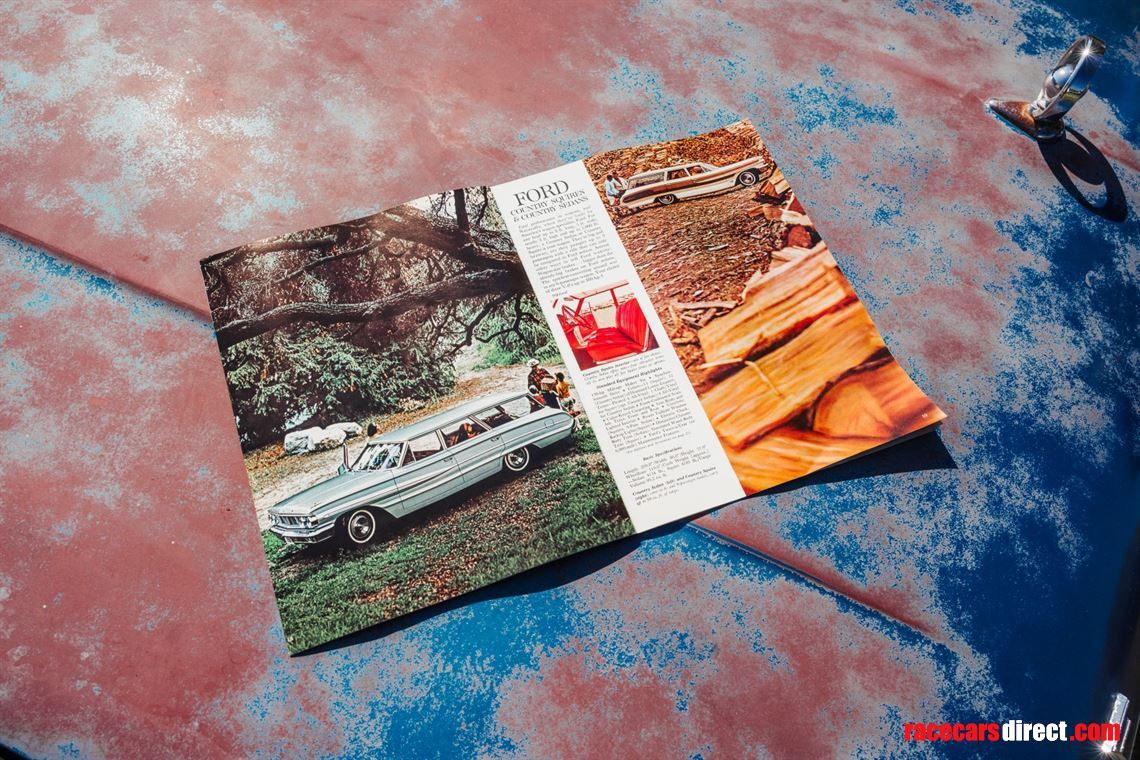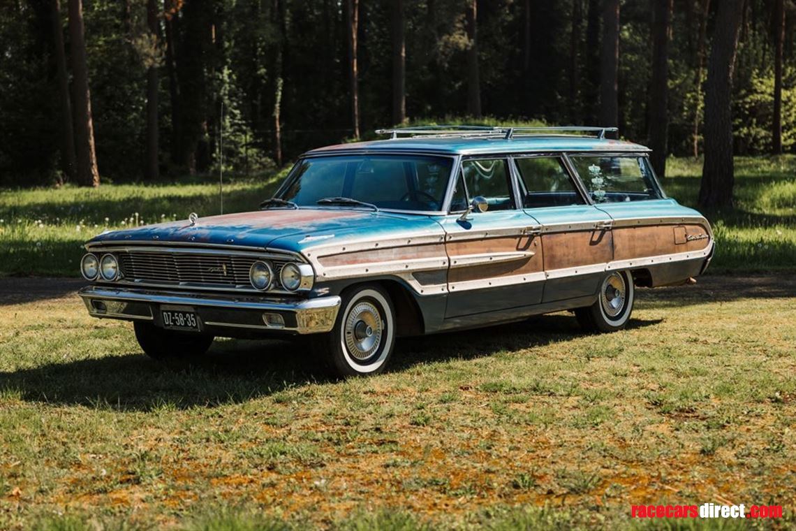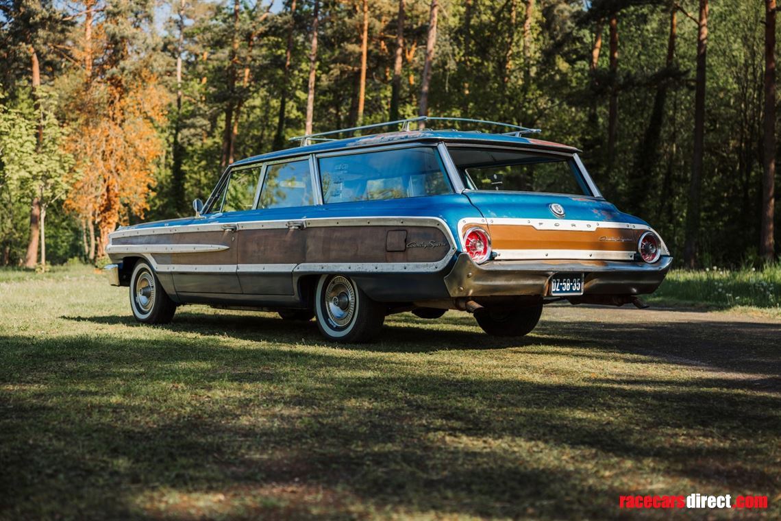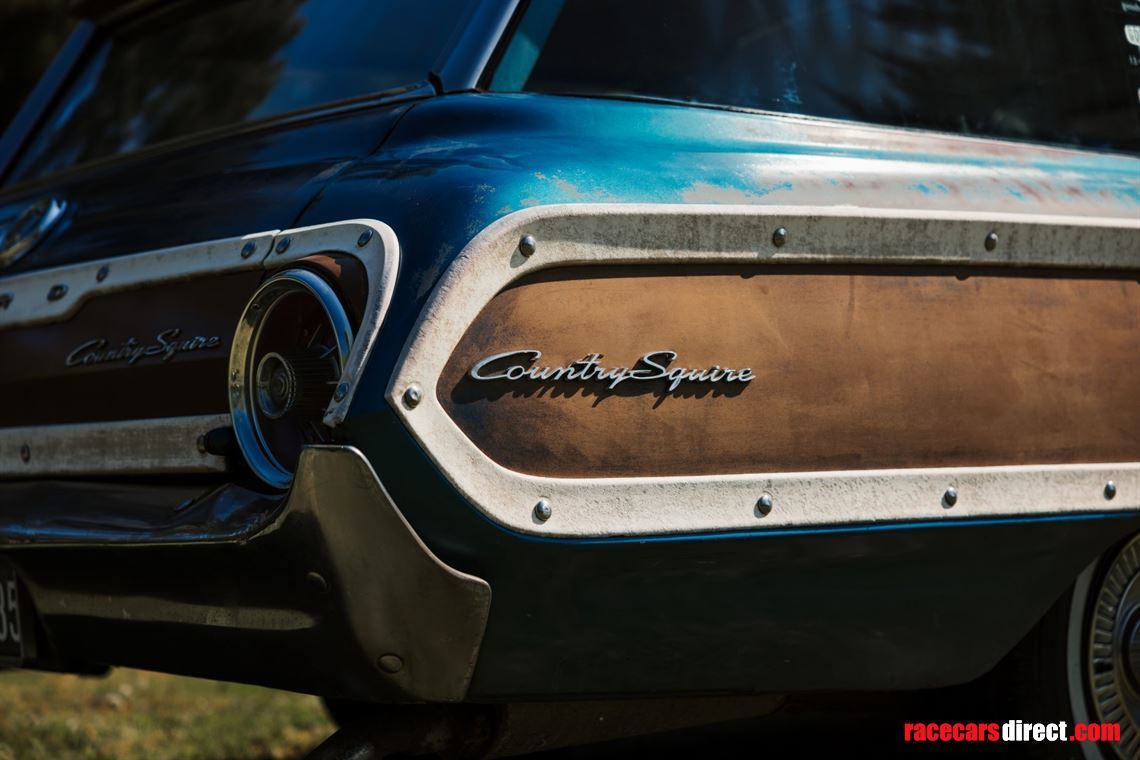 The 1964 Ford Country Squire is a classic full-size station wagon that epitomizes the mid-20th-century American family vehicle. Part of Ford's Galaxie 500 series, it features a distinct woodgrain paneling on its sides, a hallmark of the Country Squire line. This eight-passenger wagon is powered by a range of V8 engine options, paired with either manual or automatic transmissions. Known for its spacious interior, the Country Squire offered practicality and style. Its smooth ride, robust construction, and retro aesthetic make it a nostalgic icon of the era.