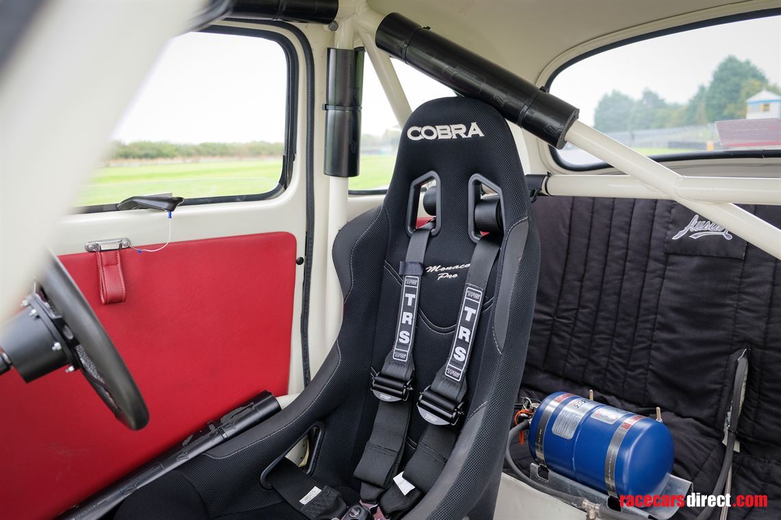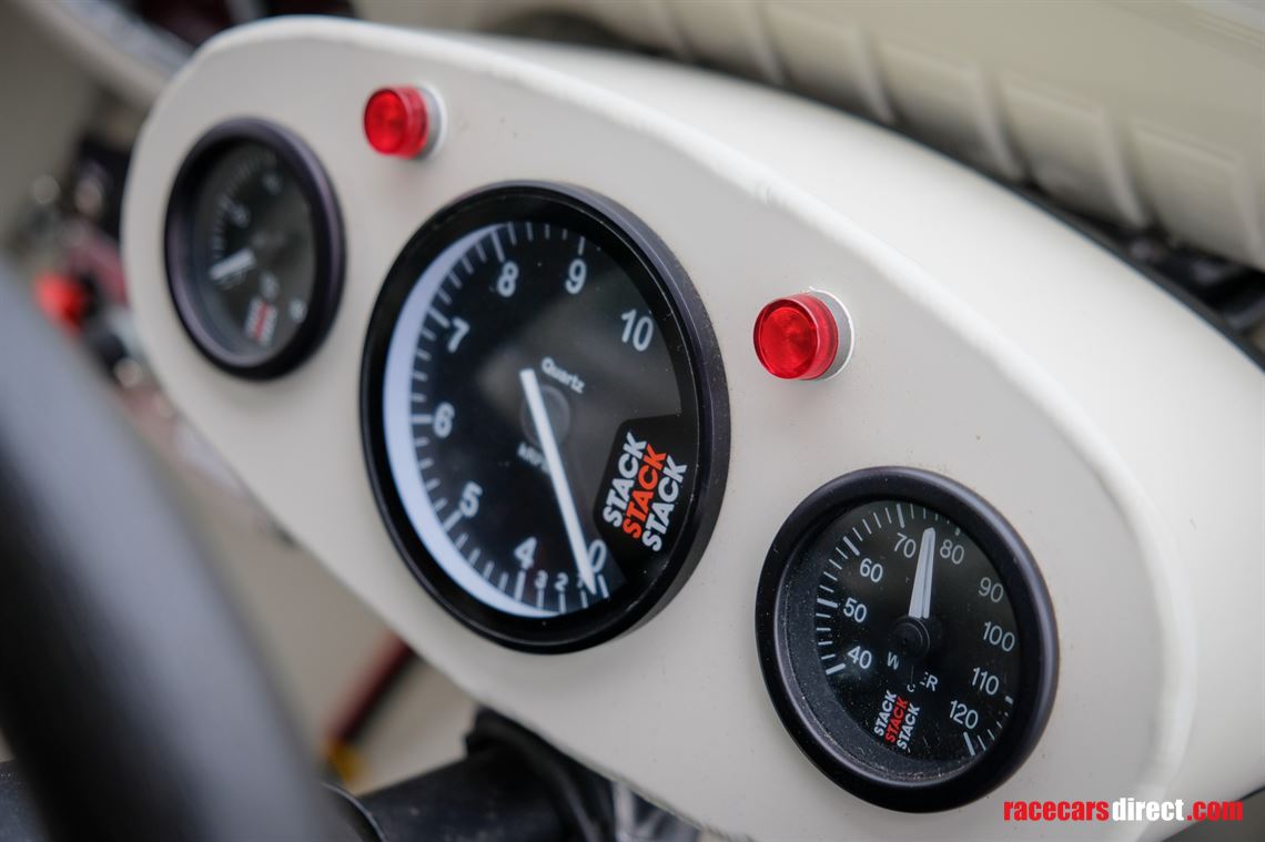 ‘FAS 329’ also features a heated front screen, perspex windows, floor mounted adjustable pedal box with integral cylinders and remote reservoirs, lightweight race battery, 40lt alloy fuel tank and electric pump, fuel pressure regulator with braided hoses throughout. Stack Gauges, a bespoke wiring loom, Cobra race seat and more.