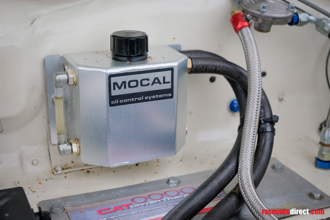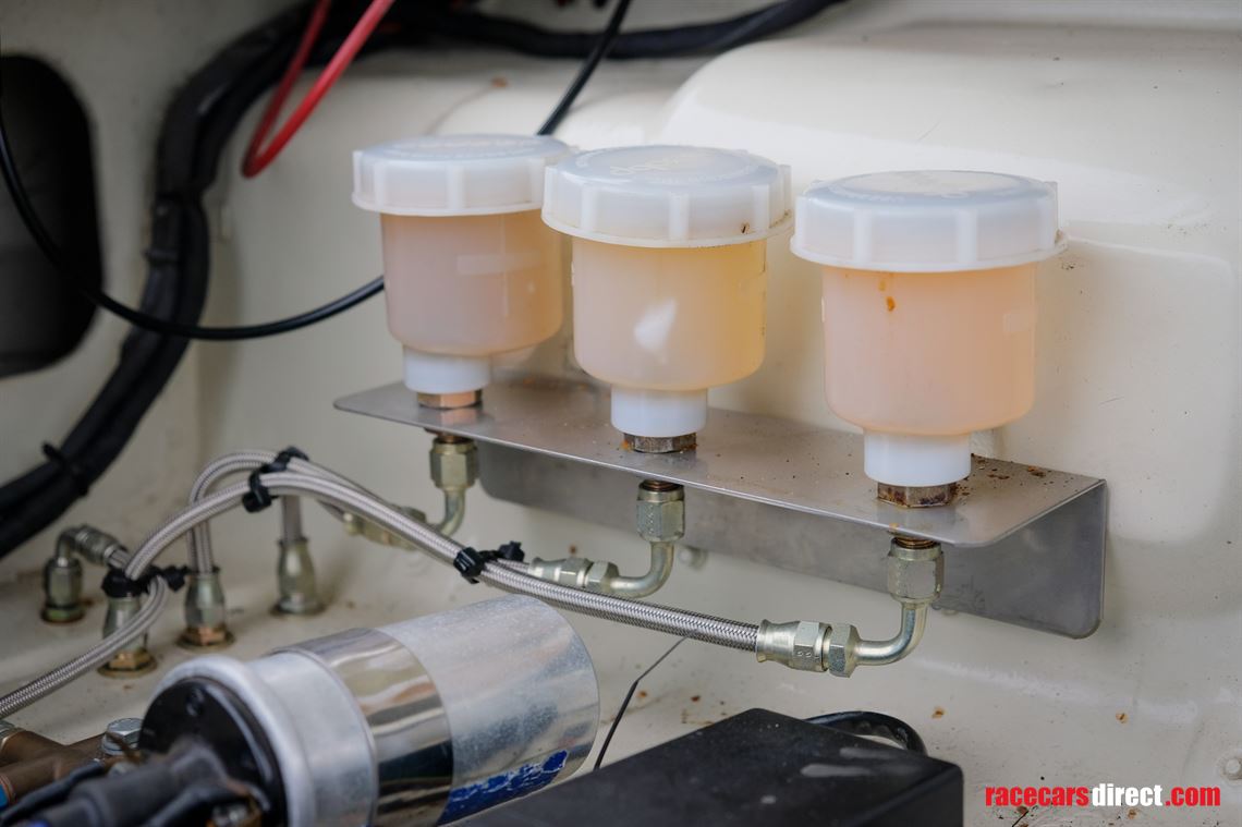 To be expected from a competitively-built car, much of the suspension componentry was supplied by Rae Davis, including front anti-roll bar and mounting, rear axle A-frame and adjustable front and rear lever arm dampers. ‘FAS 329’ features unique front and rear spring rates and camber developed with the F1 Engineer, front damper double mounting arm, and is polybushed throughout. As well as this, alloy front hubs, braided hoses, Hawk front pads and competition rear shoes.
