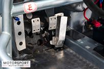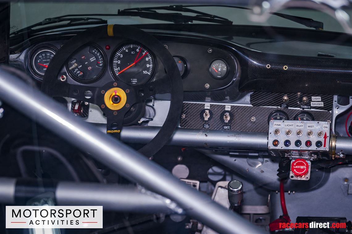 The cabin features a multi-point chassis-welded roll cage, a Tillett bucket seat with a Sabelt harness, an array of rocker switches for the car’s auxiliary functions, Tilton adjustable brake bias.