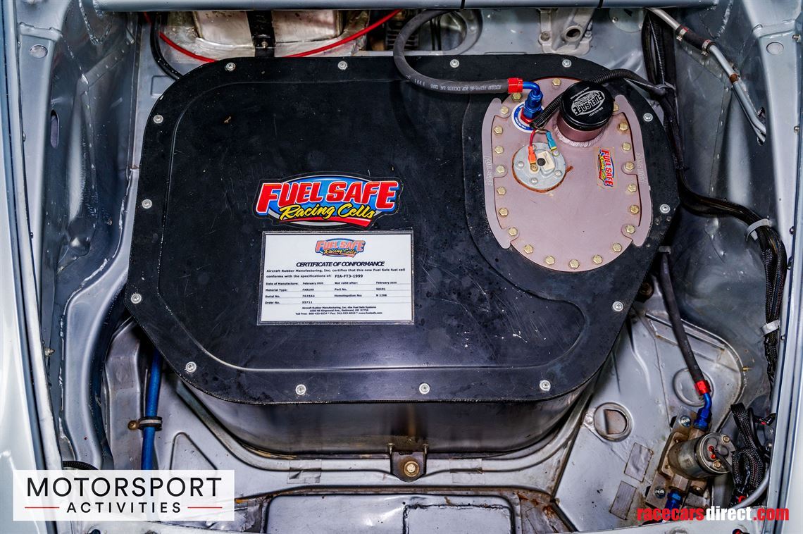 Mechanical changes include an FIA-FT3 compliant Fuel Safe racing fuel cell (validity expired in February 2025), PMO carburettors, JE high-compression pistons, a dual ignition, an RSR spaghetti-type exhaust, an RSR-type radiator and oil sump, a reinforced gearbox with RSR-type gears, and larger-diameter four-piston brake callipers.