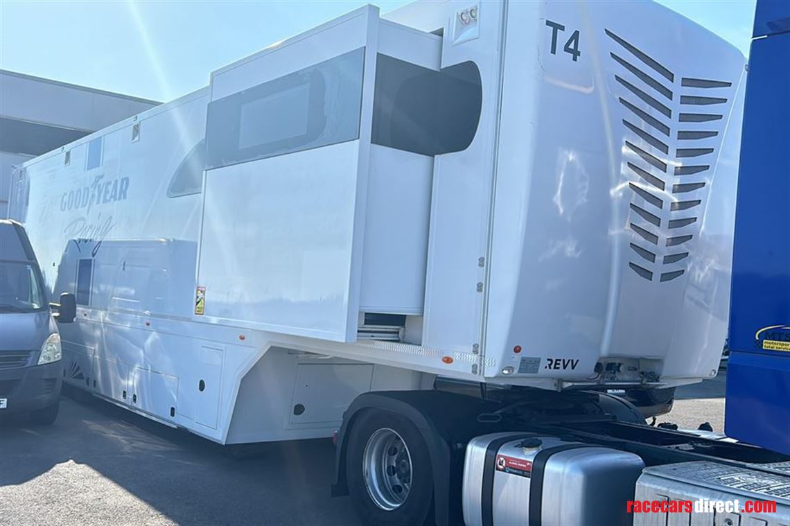 Racetrailer in perfect conditions. Spanish documents, fresh MOT and fully serviced. Expandable big office with leather sofas, big TV screen,air conditioned, fridge, plugs, internet and all the needed equipment for work. 220V .Batery charger , bif tail lift and two flats for transport 2/3 vehicles + equipment.Belly lockers. Originally built for single seaters but valid also for cars. New trailer arrival forces sale.
