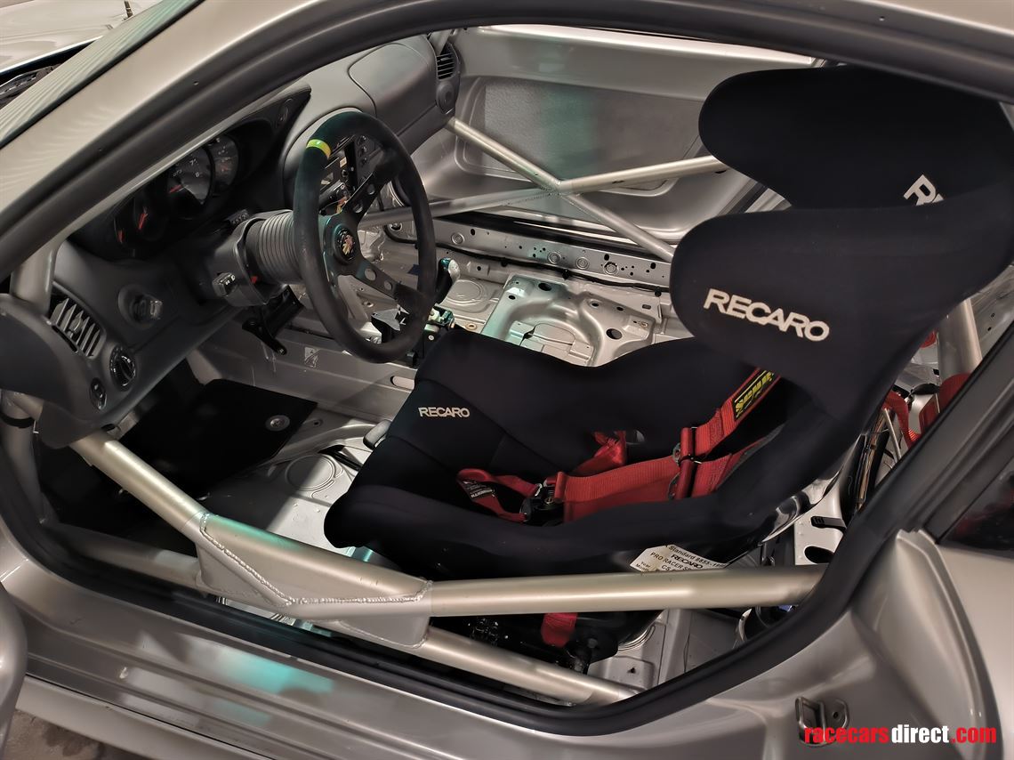 The car came to Switzerland from Germany in 2000. It was used for racetracks/track days, etc., very early on, which explains why it hasn't been on the road since. The conversion to a race car became increasingly extreme, culminating in the current result: a Supercup body with air lift and full cage, fiber-reinforced hood, fenders, and doors (Kevlar/carbon), Makrolon windows, KW Competition suspension with an expansion tank in the interior. The engine was also completely converted for racing with a performance upgrade, including a Supercup engine control unit. The car is very light, with additional lighter parts than a Supercup.