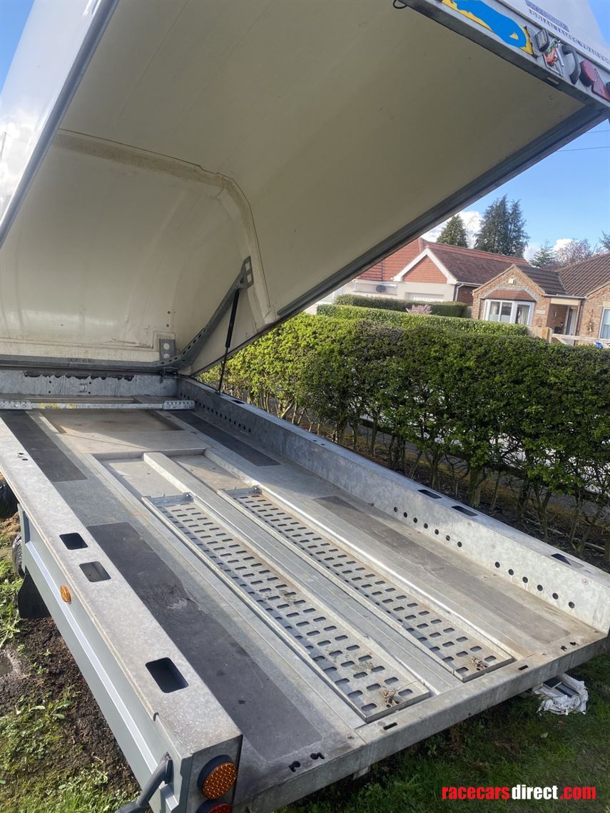 I have owned this trailer for several years and was purchased at a time when my son was racing for a short while, however it has had very little use in all this time. There is a small crazy web at the front which is not detrimental to the trailer as it remains totally dry inside. The spare wheel is brand new unused, and all four tyres are in very good order.. Overall condition is very good.