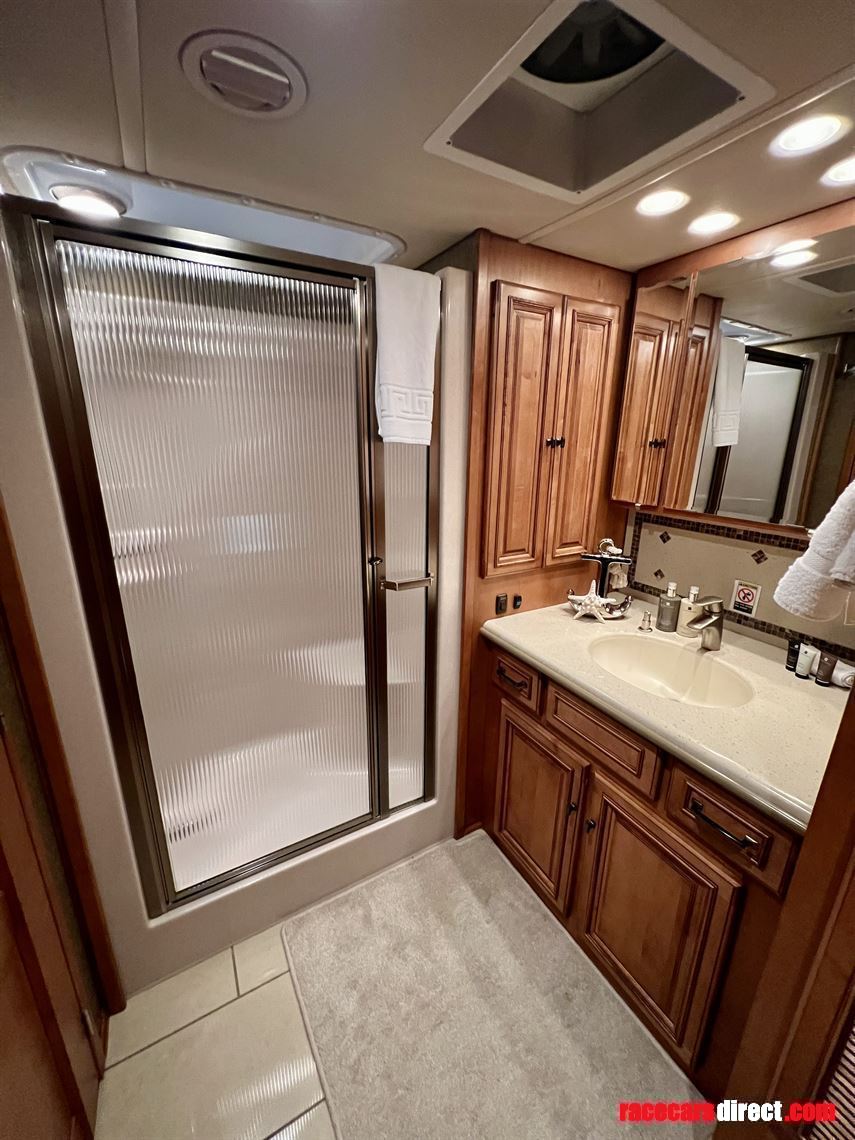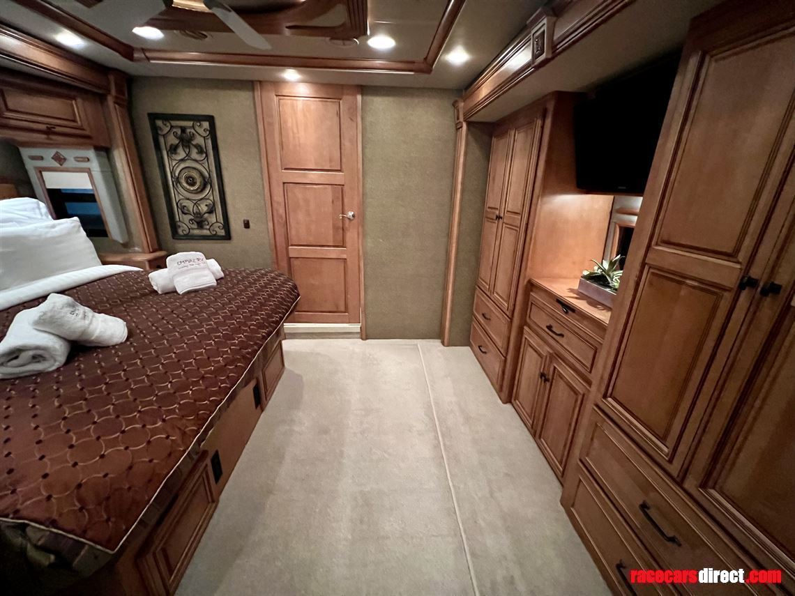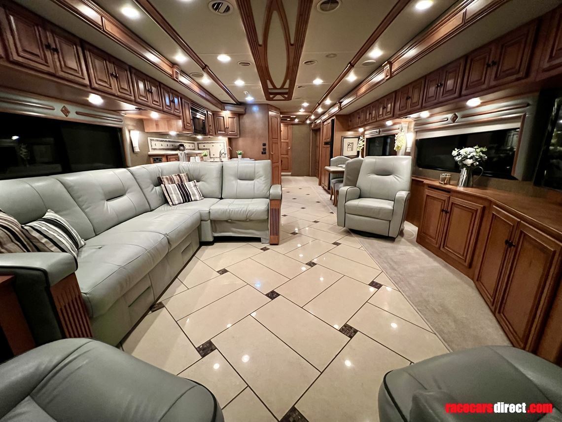 These Winnebago Tours don’t come up for sale very often and simply can’t be replaced here in the UK. The 42QD floorplan boasts 3 huge slide outs, one being a full wall which makes the interior space quite frankly overwhelming! Based on the Freightliner Custom chassis, this 43ft RV has a wheel cut of 60 degrees meaning you can put this coach literally anywhere! Powered by the Cummins 450BHP engine and coupled to the Allison 6 speed transmission, there is plenty of power in this beautiful RV.