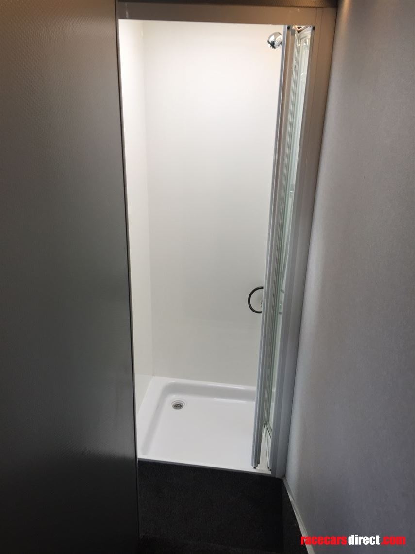 A LARGE GARAGE/WORKSHOP WHICH COULD PROBABLY TAKE 6 BIKES OR SIDE CAR OUTFIT - THIS GARAGE IS KITTED OUT WITH AMPLE STORAGE AND LOCK AWAY LOCKERS- PLENTY OF ANCHORING POINTS - ALSO COMES WITH HYDRAULIC SLIDE OUT TAIL LIFT FOR EASY LOADING - GARAGE IS RIGGED OUT READY FOR COMPRESSOR - PLENTY OF POWER POINTS.