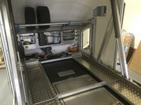 Bespoke installation to accomodate second vehicle - incorporating aluminium components throughout and hydraulically operated steel rams. This adaption does not intrude into the original manufacturer's base.
