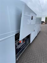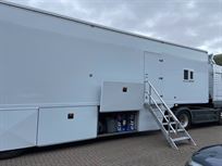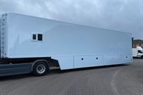 Suitable for 3x GTs, TCR, Saloon cars etc. This trailer has 13.2m of internal floor space. Internal office with overhead lockers and seating. Multiple storage areas with large tyre racks and shelves internally (Suitable for BSB/Superbike wheels).