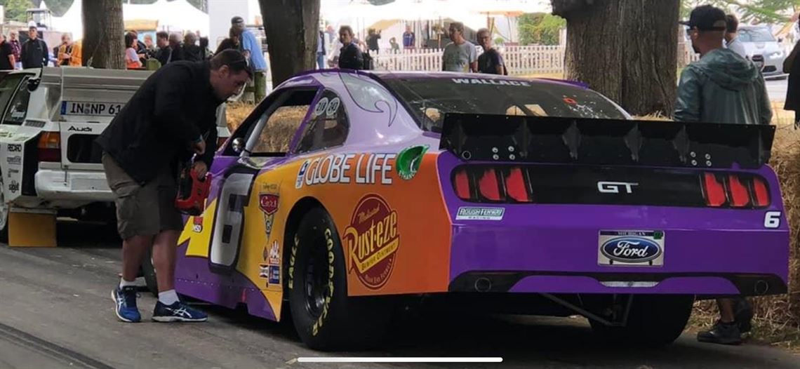 last raced in 2017 by NASCAR cup series race winner Bubba Wallace, car seen on current Nextflix documentary " RACE"( episode 1) . Genuine 800hp dry sump Roush Yates Ford 358 ci motor , Yates Heads , Roller cam with 830 Holley, C & R crash box , with quartermaster 71/4 triple plate clutch . 9" Ford rear with NASCAR spec Detroit Locker and 3.9 gears. Huge Brembo brakes front and rear . Attended the World famous Goodwood Festival of Speed in 2021 and 2022 to demo up the hill climb