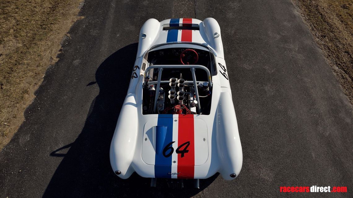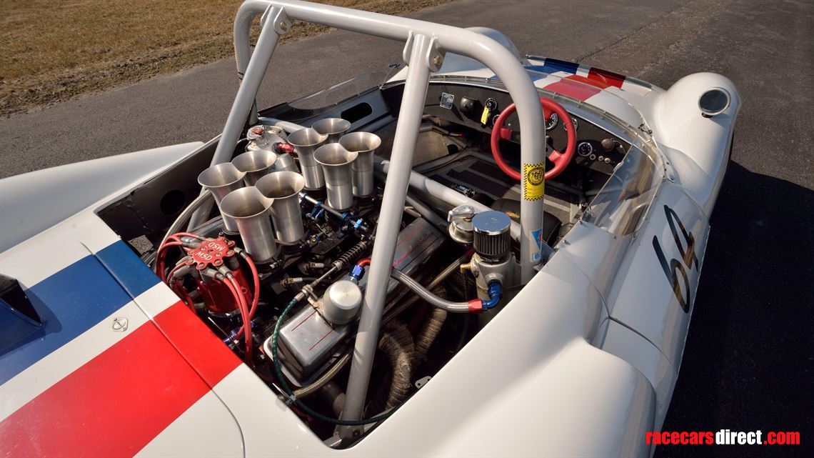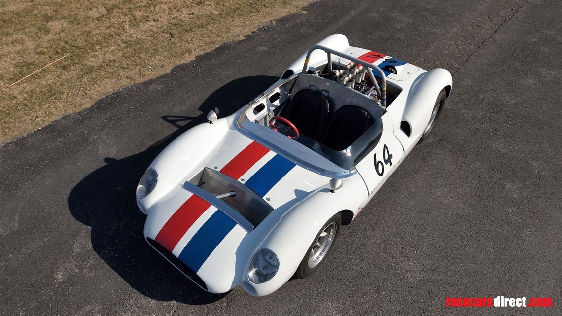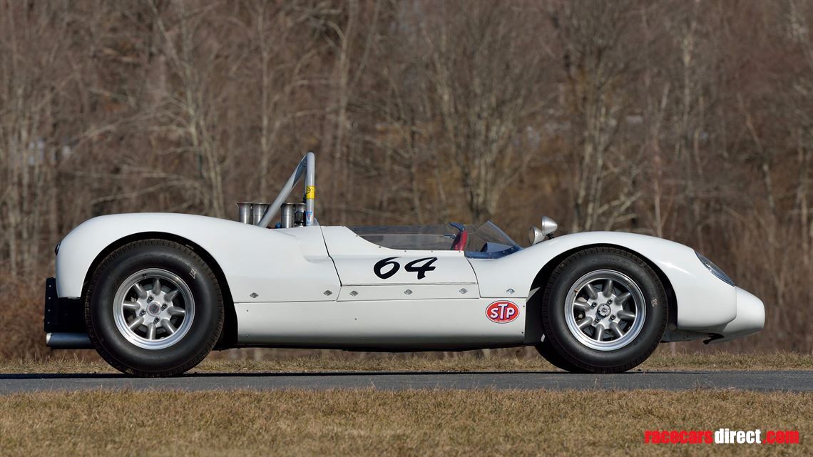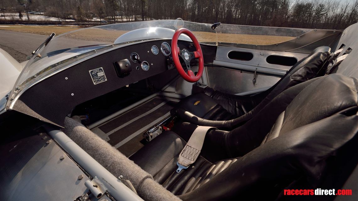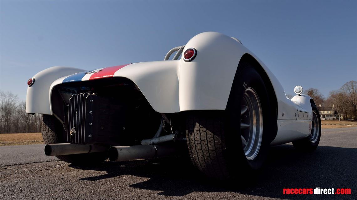 This car CM/3/64 went to Jack Brewer in Upstate N.Y. and was raced with a fuel injected 327 CID Chevrolet V-8 and BMC Huffaker transaxle. This car is all original, including its original aluminum body, chassis, BMC Huffaker transaxle, Hilborne fuel injection and period correct engine. It has had success in SCCA and USRRC Competition, which is well documented by period photographs, magazine articles and race reports.