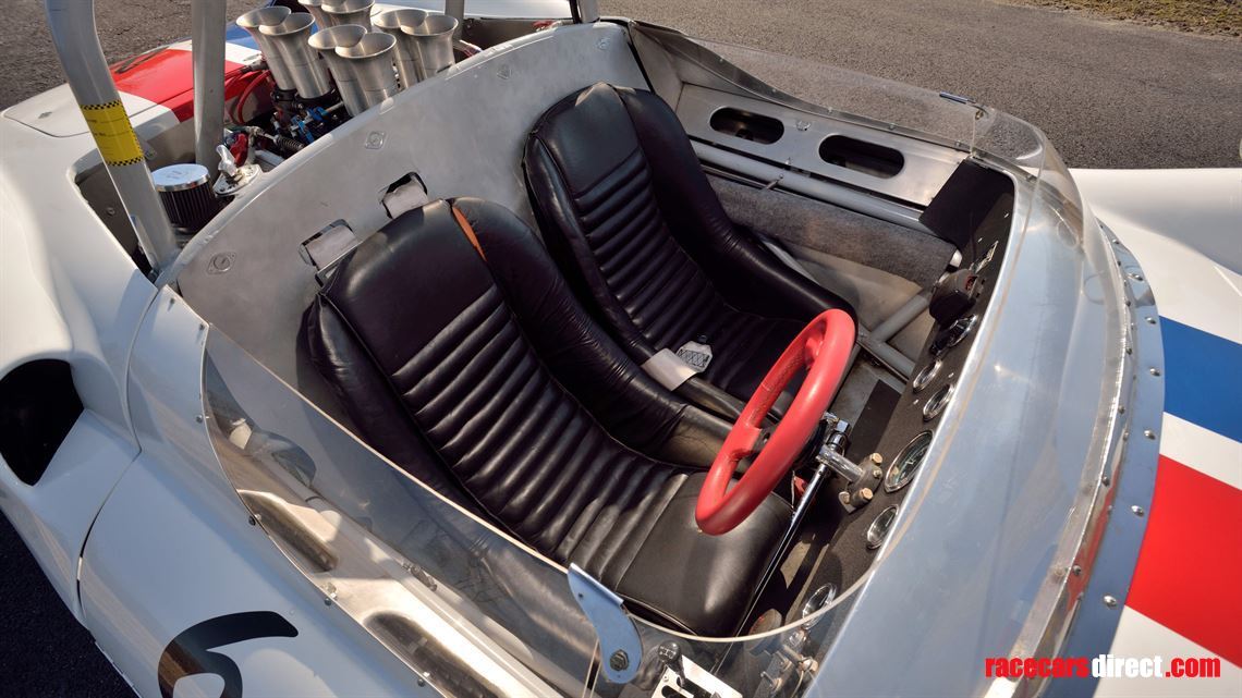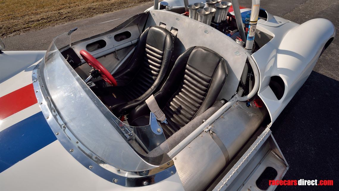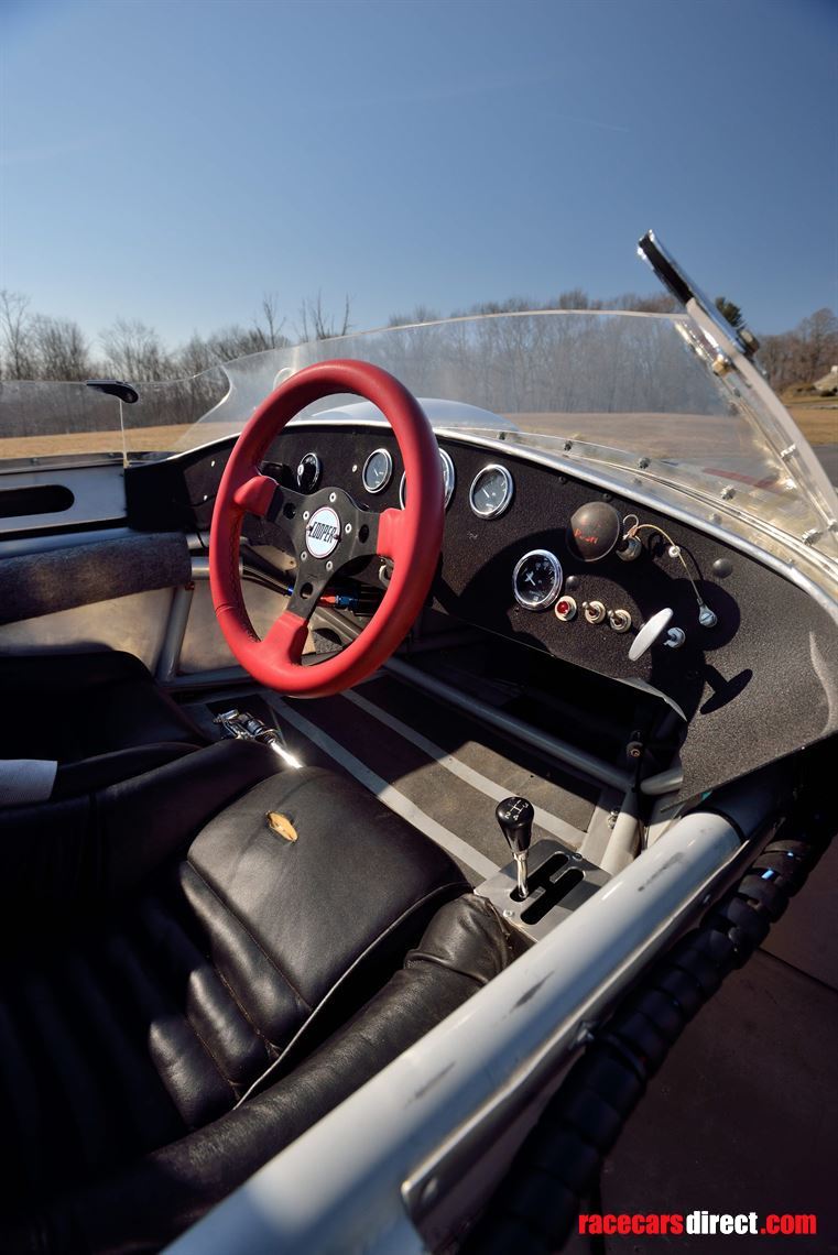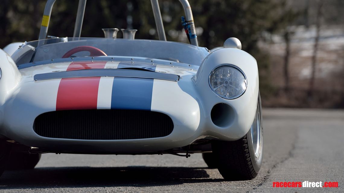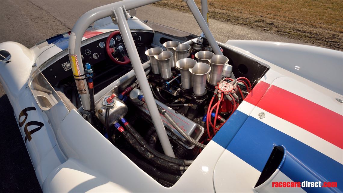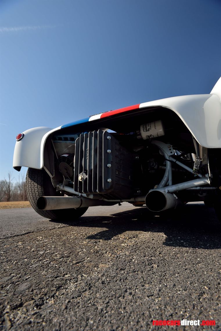 This car CM/3/64 went to Jack Brewer in Upstate N.Y. and was raced with a fuel injected 327 CID Chevrolet V-8 and BMC Huffaker transaxle. This car is all original, including its original aluminum body, chassis, BMC Huffaker transaxle, Hilborne fuel injection and period correct engine. It has had success in SCCA and USRRC Competition, which is well documented by period photographs, magazine articles and race reports.