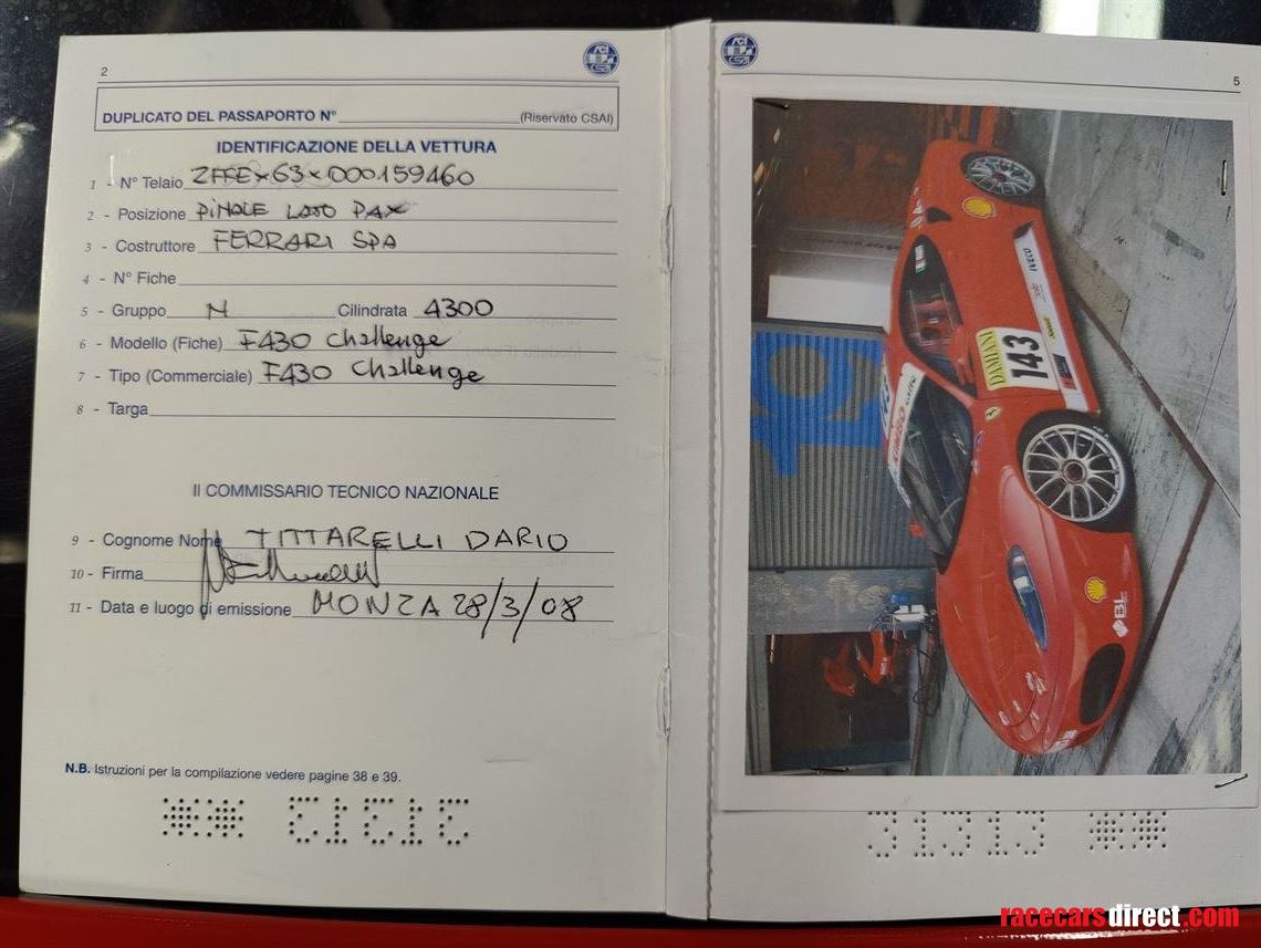 For sale: 2007 F430 Challenge car, 19.000 km, clutch wear only 2%. Only 1 track day after engine + gearbox service at Dutch Ferrari dealer Kroymans. New steel bake discs and pads at front, new pads at rear. Car has an Italian Wagenpass, with race history. Comes with original seat + harness. Included are two extra sets of wheels (new slicks, used rain tires), and wheel removal nut.  Can deliver to your doorstep in Europe, or assist in shipping worldwide. Contact: Veldhuisjr@gmail.com +31655738684