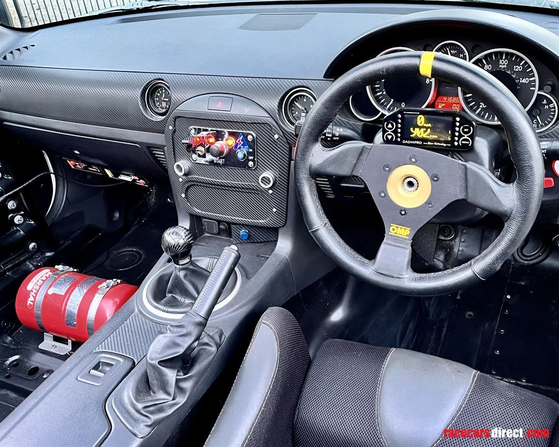 This Race Car is in fanstasic condition and has been exceptionally well built with a lot care and attention using a straight low mileage (40K) Mazda MX5 2.0 mk3.5 which makes very good bhp and torque. K&N Vortex cold air intake and Racing Beat 4-1 Exhaust manifold with 100 cell race cat & Cobra back box. It comes with two gearboxes, 5 and 6 speed, and two Diffs 4.1 & 3.7 LSD (All mk3.5)
