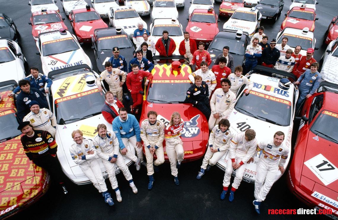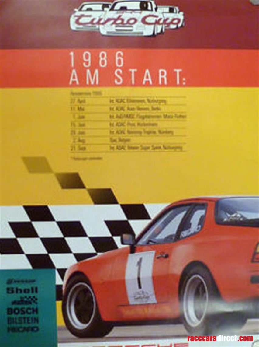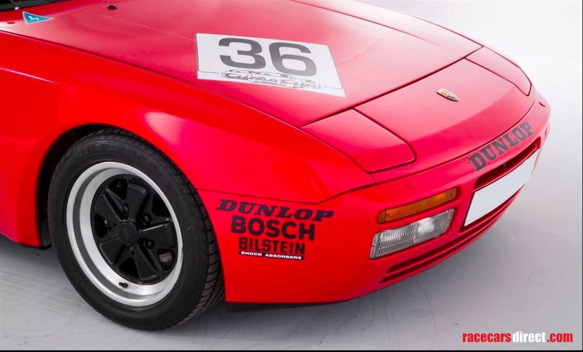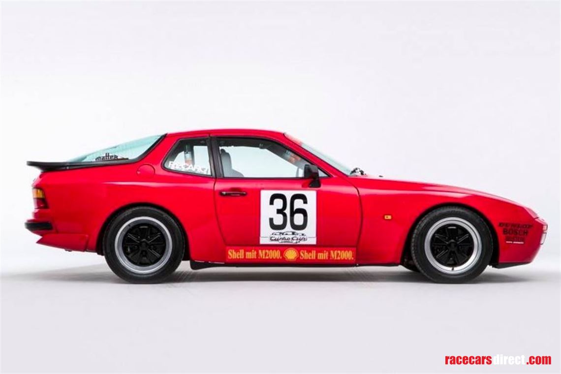 In 1986 Porsche launched its very first one-make series, the Turbo Cup. Privateers could purchase a Porsche 944 Turbo with option codes 220-LSD, 666-without body preservation, and 751-Motorsport preparation. The Cup cars were powered by the same 2.5-liter four-cylinder engine found in the road cars and the power and torque figures were broadly similar. Option code 751 specified the car from the factory with alterations that included a magnesium inlet manifold, magnesium sump, smaller and lighter alternator, modified turbo, and a reinforced gearbox. Track-suited suspension by Bilstein was added as was an 8-point roll cage by Matter and the front chassis rails were strengthened. For weight reduction, the electric windows were replaced by manual and other items such as door pockets, climate controls, sunshine roof, rear-window wiper, and radio were also deleted. A racing seat by Recaro was added along with other necessary safety features to meet current racing legislation. Such was the success of this one-make series that the following year it was adopted by other European countries. The series evolved over time and is now the Porsche Carrera Cup, continuing to provide close exciting racing and has proven to be the breeding ground for new talent on the world racing scene. We are pleased to offer this exceptional 944 Turbo Cup car, one of just 150 built by Porsche for competition use and delivered new in Germany during March 1986. It was entered into the very first Turbo Cup meeting at the Nurburgring in April of the same year, and documents within the history folder confirm that this car, wearing start number 36, was entered by team VW Schulz (now Porsche Centre Essen) and driven by Annette Meeuvissen who would later go on to compete in the DTM with the factory team BMW Schnitzer. This example presents very well today in its original Press Release livery.
