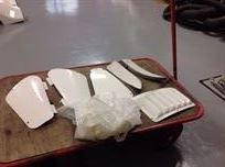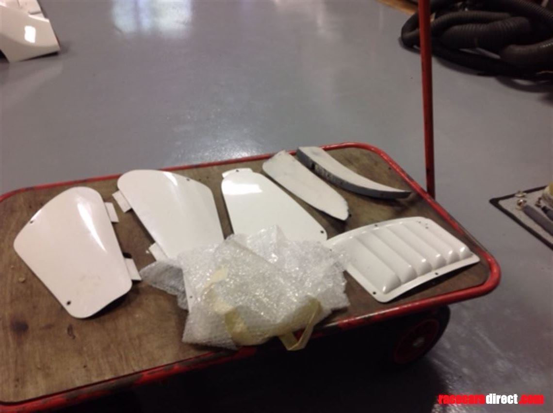 Spare front and rear sections unused since repaint, box of panels including canards, damper inspection covers, all painted and unused