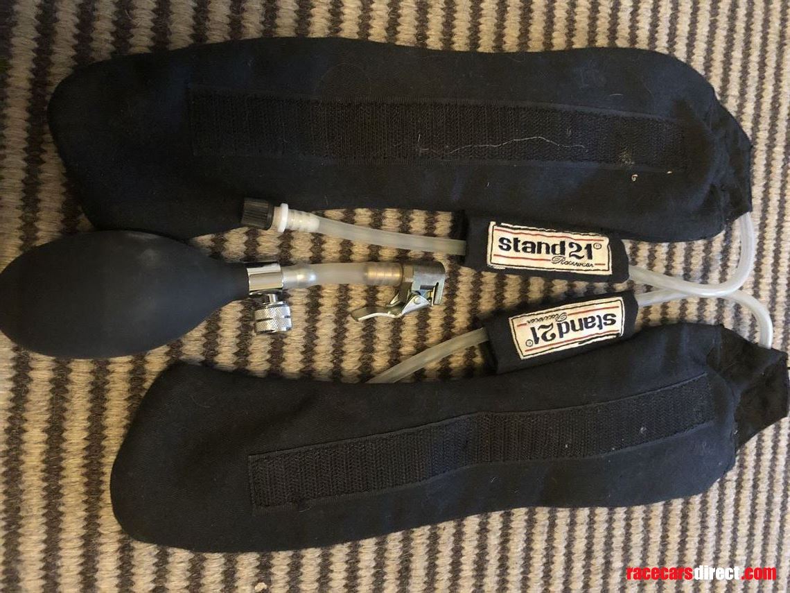 Have for sale Stand 21 shoulder pads with air pump. In good condition. Hold air. Just need to add Velcro to your HANS device.
