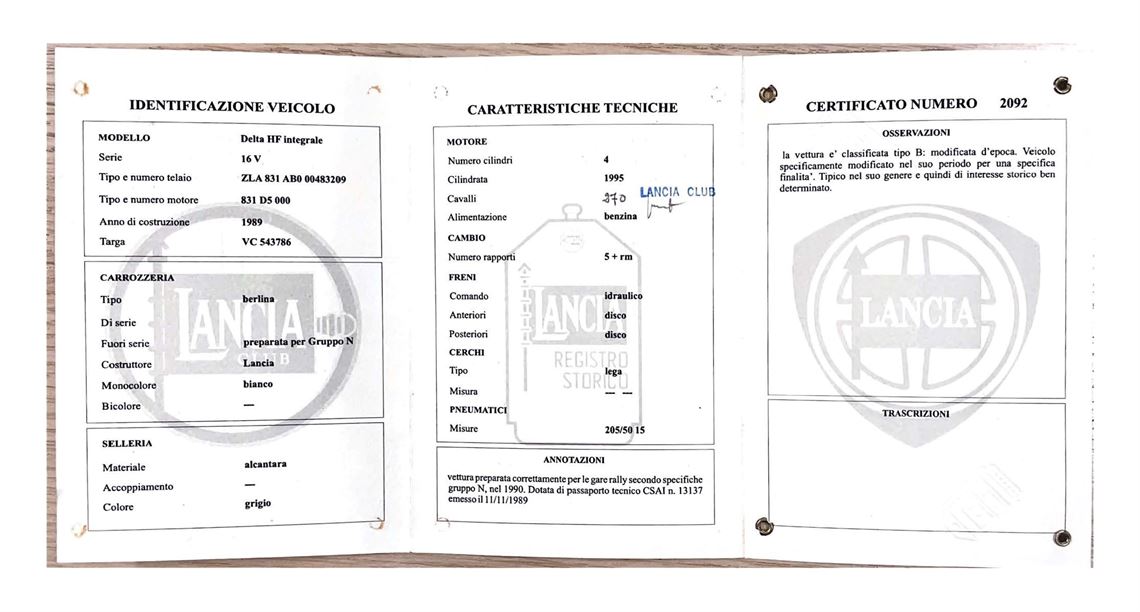 An iconic integral Delta, with a 16-valve engine, strictly derived from the road car and prepared by Team Lampo from Biella, according to the dictates of the Group N regulations for rally racing.