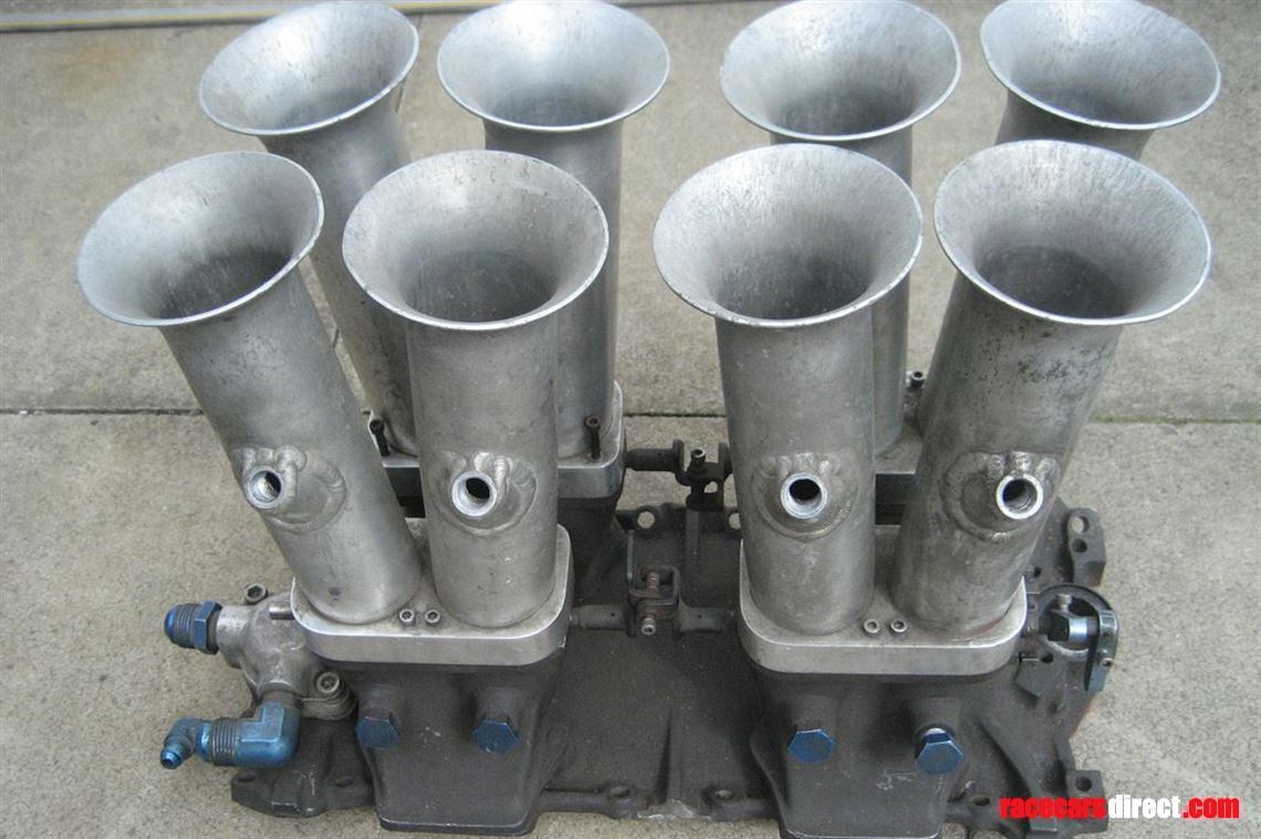 This manifold probably came off a Can Am car. Will obviously fit all small block chevys (If you have the room above the engine) This particular manifold is much sort after as the area around the thermostat housing corrodes badly. As can be seen in the photos this is almost new and very little used.