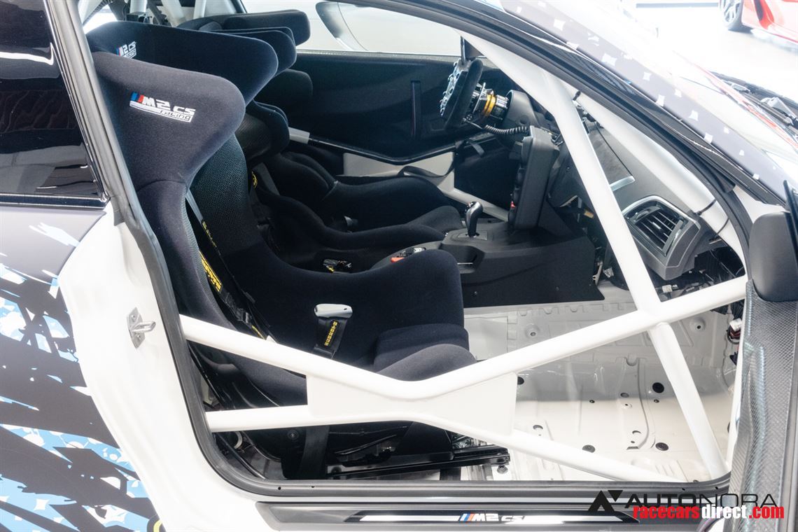 With the BMW M2 CS Racing, BMW M Motorsport continues its tradition of close-to-production vehicles. Like its two predecessors, the BMW M235i Racing and the BMW M240i Racing, it paves the way for ambitious teams and drivers to get involved in motorsport. The BMW M2 CS Racing boasts impressive driving figures and offers the performance of a pedigree race car at a competitive price. The BMW M2 CS, a BMW M GmbH special edition, is the perfect base for the new entry-level model. In close collaboration with BMW M GmbH colleagues, BMW Motorsport engineers used many of the insights from the development of the BMW M4 GT4 to set totally new standards in the entry-level class with the BMW M2 CS Racing. Motorsport-specific driving aids, such as ABS and DSC, guarantee that newcomers will be able to handle the car safely. A mechanical limited slip differential with pre-load and separate cooling also comes as standard, as do specially manufactured drive shafts. Like its production counterpart, the roof is also made of carbon.