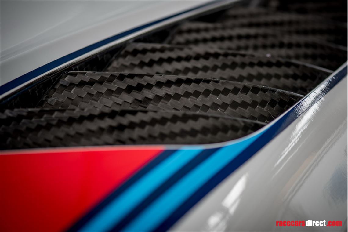 Our car has been part of a private car collection since its delivery in October 2019 and has only covered 990 km since. It has been wrapped in iconic and desirable Martini livery with the interior finished in black carbon and alcantara.