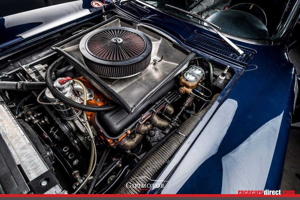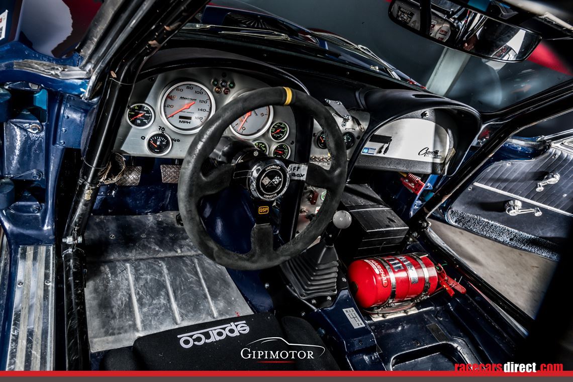This specific car, built in 1964 in the Saint Louis factory as a 327ci road car was acquired through Claremont Corvette (UK) in the early 2000s and then restored and transformed by FS Racing to a full 1965 Big Block, disc braked and racing specification car. With a strengthen chassis, the car was ready to receive a Pete Knight engine coupled to a M22 gearbox.