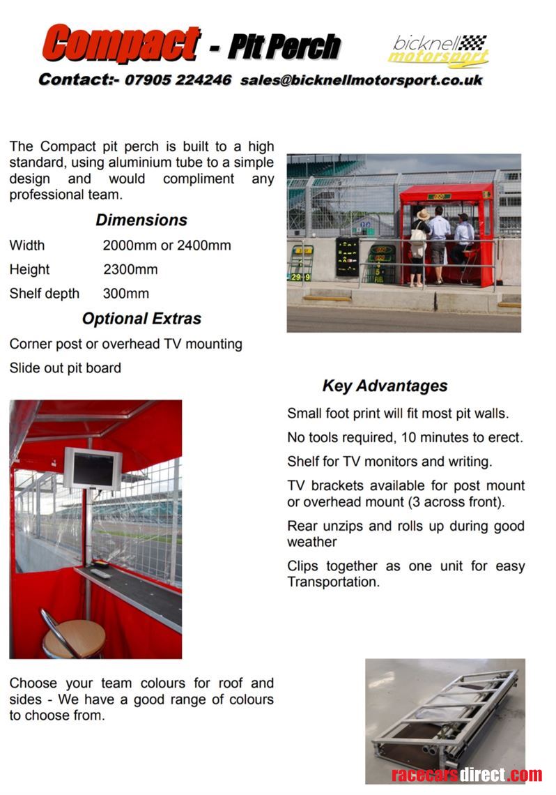 Used Bicknell Compact Pit Wall Perch in black. With shelf for laptops and TV bar. Used for 2 seasons in BTCC.
