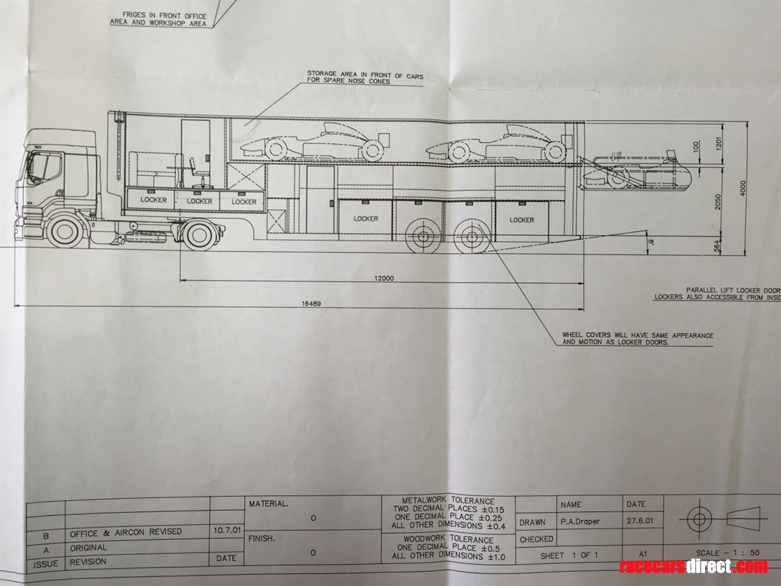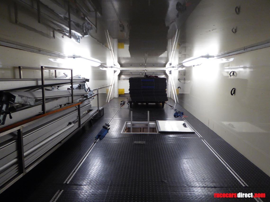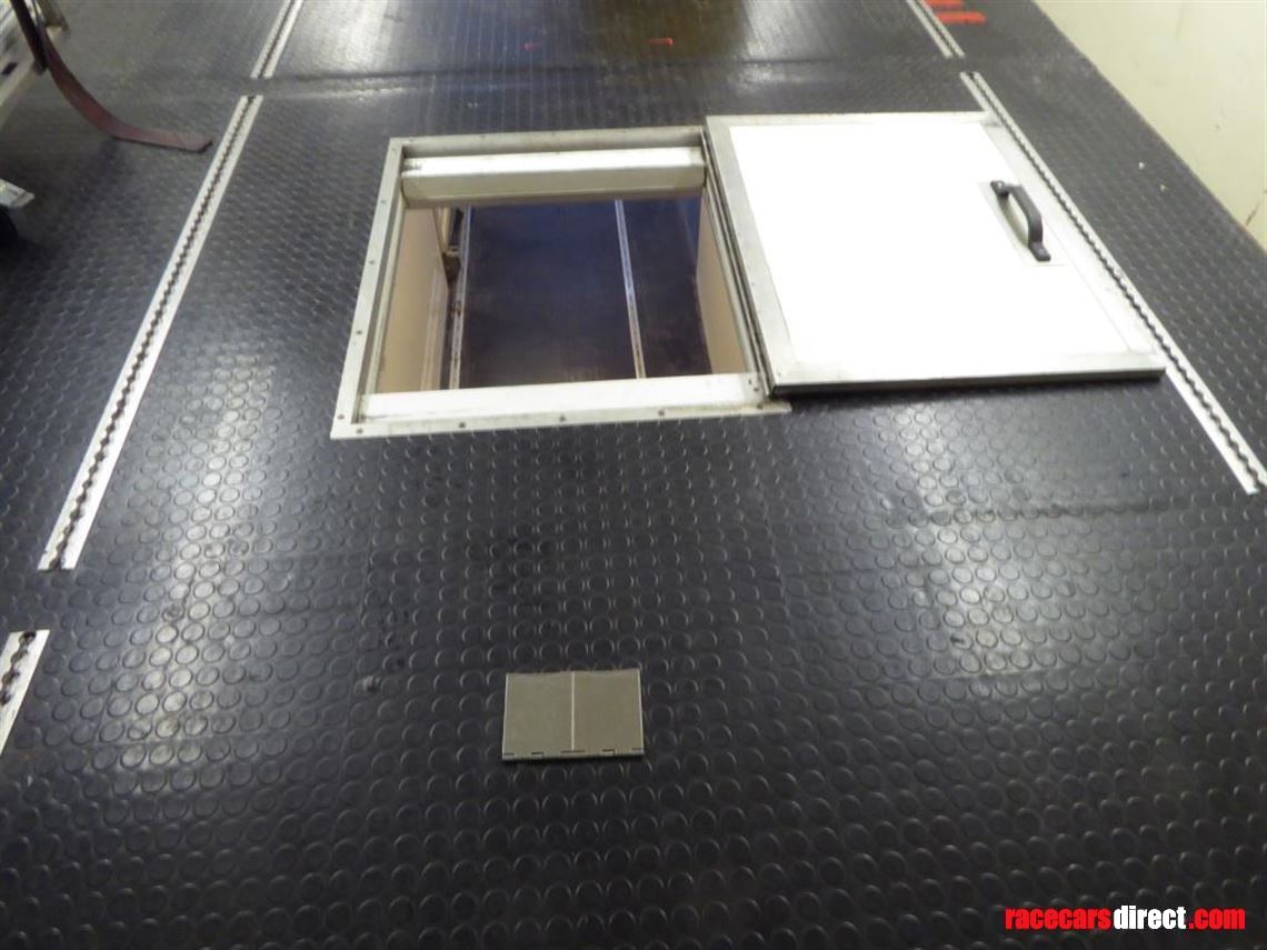 The lower deck will not take a car. It would modify to carry a third formula car if required.