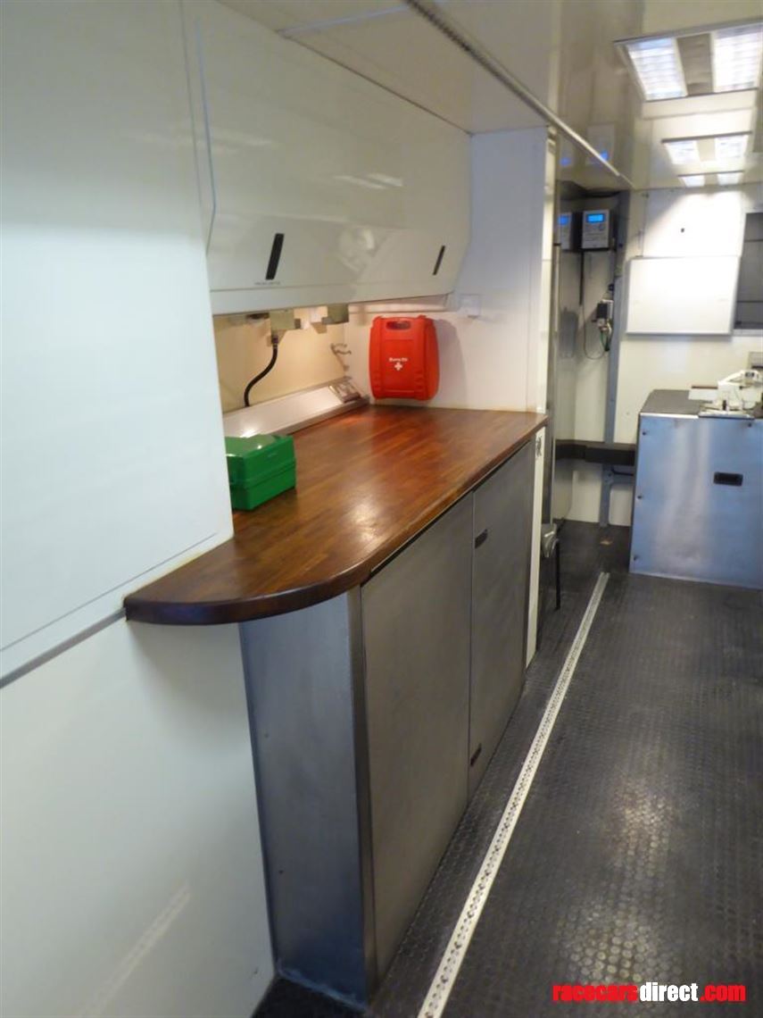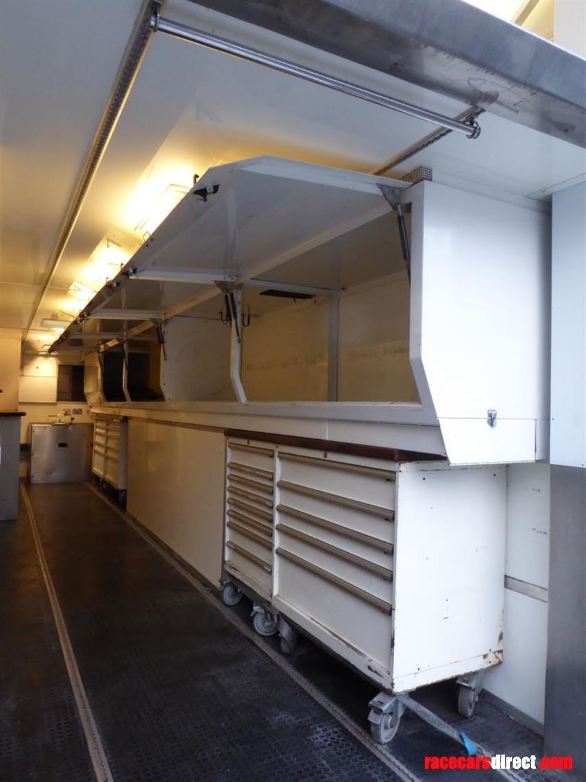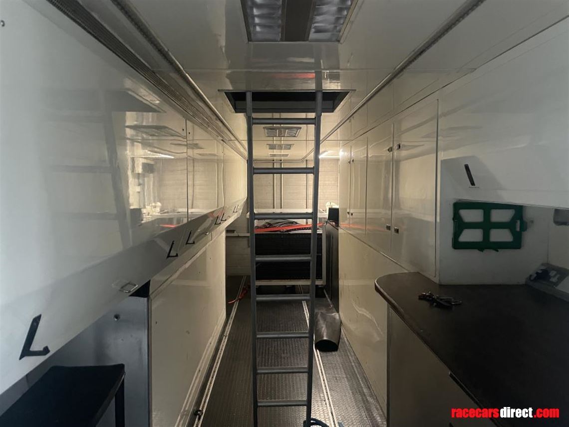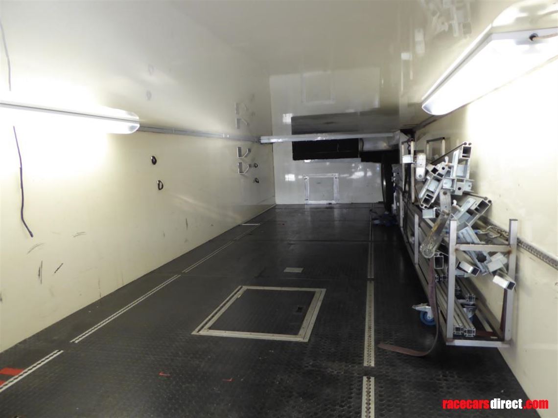The lower deck will not take a car. It would modify to carry a third formula car if required.