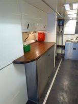Management/ data office on the goose neck: Accessed via a side door with removable steps.