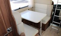 We have just taken into stock this lovely example of an Roller Team, Auto Roller 746, only 58500 miles on the clock and in good condition both inside and out. This is a true 6 berth with the rear U-shape lounge, which is one of the best layouts available and can be used as 2 singles or a large double at night to suit your requirements. Large windows around this area allow plenty of light, plus 4 full seatbelts and 2 lapbelts so the family can travel safely. Inside the cab you have air conditioning, cruise control, driver passenger airbags, stereo system with bluetooth, and electric windows, and 6 speed manual gearbox. Above the cab is a king size bed which folds up during the day for easier cab access, and at night will easily sleep a couple of children or adults. The offside galley kitchen offers you a hob with 3 gas burners under a glass lid, oven grill, round stainless steel sink and a 3 way fridge with separate freezer box. You also have lots of storage space both above and below for all your kitchen wares. The washroom has cassette toilet with electric flush, vanity hand wash basin and a shower enclosure.