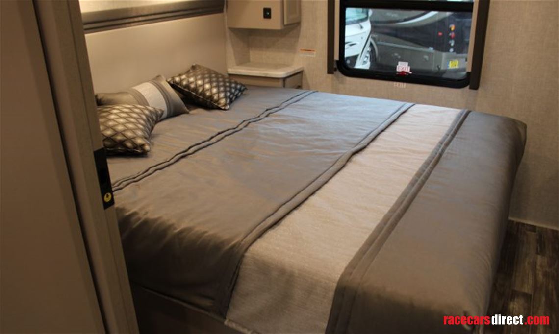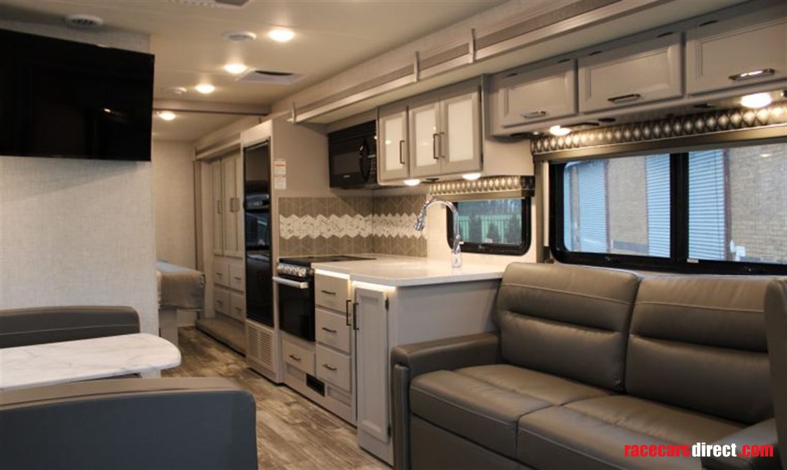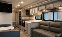 Make every journey a memorable one with this Hurricane Class A gas motorhome! Get together with your favorite people and explore all that nature has to offer while still enjoying all that technology has to offer with the 3 TVs, USB charging ports, and ceiling-ducted A/C system that has been included on this model. You will also appreciate having plenty of space and accommodations to sleep nine people because of the full-wall slide that has been added. And Don’t forget to bring along your toiletries and groceries because this unit also gives you a full bathroom and kitchen!
