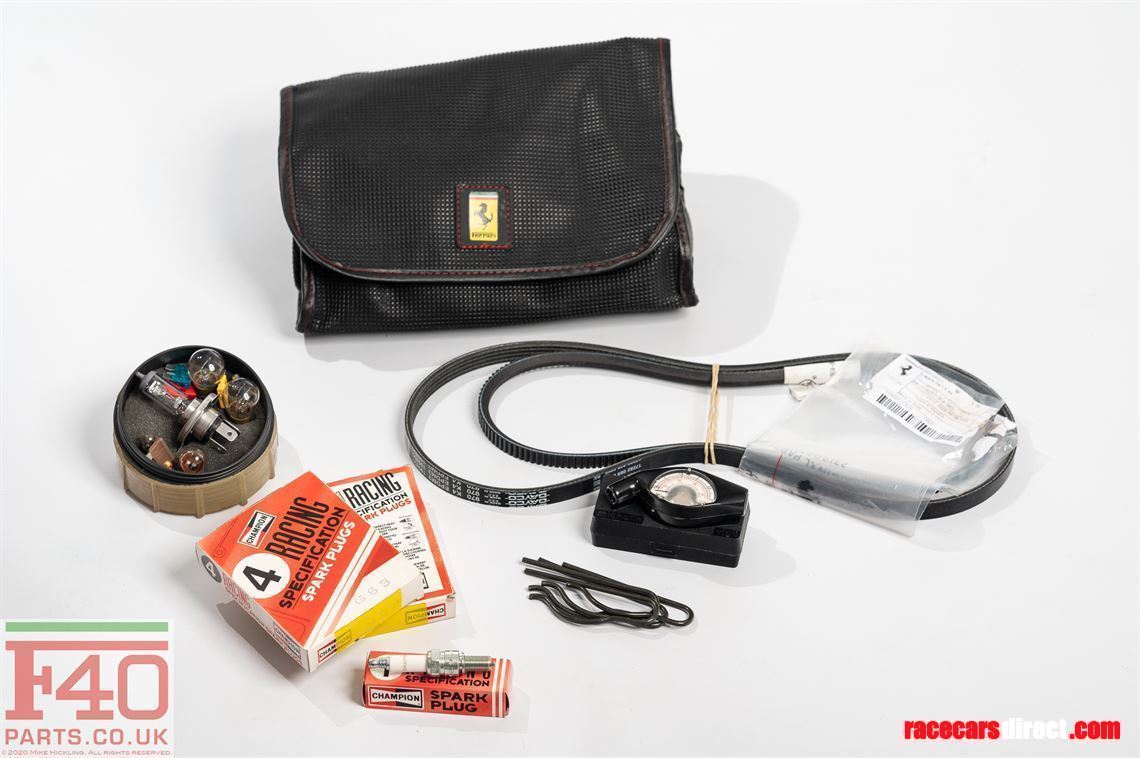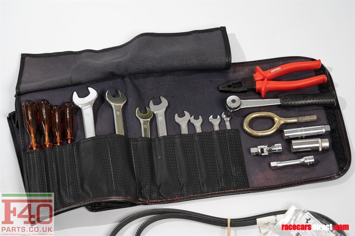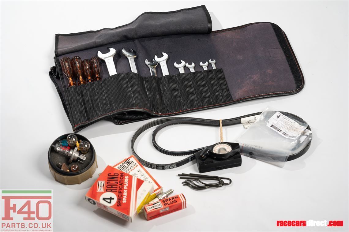 F40 Toolkit PN: 138669. Comes complete with tool bag, 4 x screwdrivers, 8 x spanners, complete set of wenches, pliers & tow hook eye, light bulb and fuse container, wheel pin set, spark plug set, travel belts, and manometer. Original OEM, these toolkits are becoming increasingly difficult to find and are a must have for any owner collector.
