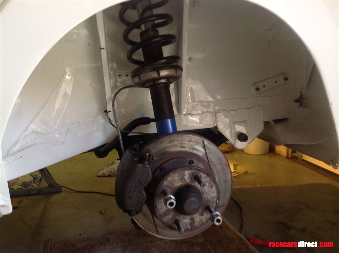 Heavy duty X member with new modified high ratio steering rack and track rods new rose jointed arms and tie bars all made by Jim Little tarmac spec anti roll bar Bilstien adjustable front struts 280/130 inserts ( used on one rally since new) alloy bearing rally top mounts AP 4 pot callipers and bells ventilated discs. Electric power steering making for easier steering and handling
