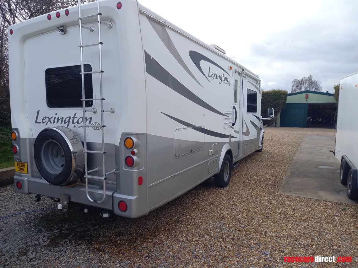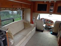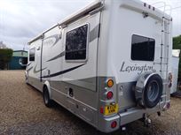 The Lexington is well equipped vehicle benefiting from three power operated slide outs which create a huge amount of internal space. The large front lounge area benefits from a three seat leather sofa bed with seat belts and a four seat dining area. There is a well equipped kitchen complete with a large fridge freezer, solid surfaces, a combination microwave oven with three ring hob, extractor fan and sink. Moving towards the back of the vehicle there is a WC with toilet and hand basin and a separate shower cubicle opposite. There is a slide out on the left rear of the vehicle which enlarges the bedroom area; this has a side facing island bed and a huge amount of built in storage. This particular Lexington also benefits from the full body paint option, refillable gas tank, habitation and cab air conditioning, built in generator, surround sound, invertor, electric Big Foot levelling jacks, tow bar, reversing camera and rear ladder.